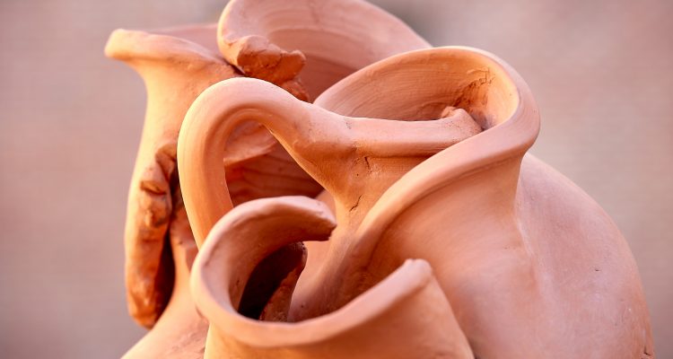 El conjunto de trabajos que se muestran parte de los recipientes que tradicionalmente han servido para albergar y transportar fluidos, como ánforas, vasijas, jarrones, jarras, vasos, cuencos. Para ello se han estudiado sus formas y materiales mediante ejercicios de descomposición y fragmentación, trabajando con dichos recipientes en su elaboración en fresco junto a un alfarero, el último de una larga saga de artesanos de un pequeño pueblo de la provincia de Huesca, de la comarca de donde proviene la familia del artista.