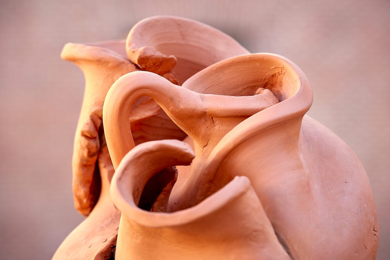 El conjunto de trabajos que se muestran parte de los recipientes que tradicionalmente han servido para albergar y transportar fluidos, como ánforas, vasijas, jarrones, jarras, vasos, cuencos. Para ello se han estudiado sus formas y materiales mediante ejercicios de descomposición y fragmentación, trabajando con dichos recipientes en su elaboración en fresco junto a un alfarero, el último de una larga saga de artesanos de un pequeño pueblo de la provincia de Huesca, de la comarca de donde proviene la familia del artista.