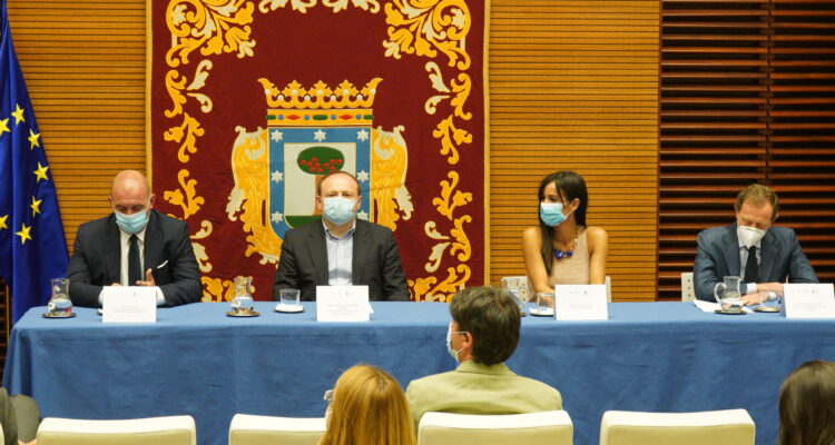 La vicealcaldesa de Madrid, Begoña Villacís, y el delegado de Economía, Innovación y Empleo, Miguel Ángel Redondo, han dado hoy la bienvenida oficial al Foro de Empresas por Madrid a los clubes deportivos del Real Madrid y el Atlético de Madrid que han estado representados por su director de relaciones institucionales, Emilio Butragueño, y su vicepresidente, Antonio Alonso, respectivamente.