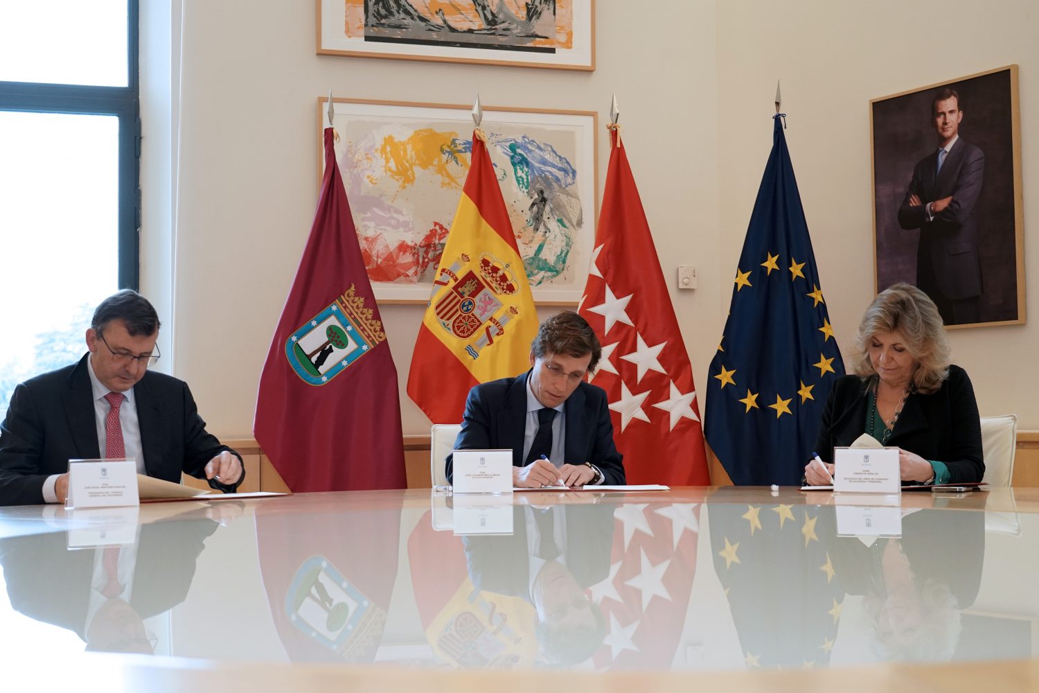 El alcalde de Madrid, José Luis Martínez-Almeida, ha suscrito esta mañana, junto a la presidenta de la Agencia Tributaria de Madrid, Engracia Hidalgo, y el presidente del Consejo General del Notariado (CGN), José Ángel Martínez Sanchiz, un convenio con el fin de reforzar la lucha contra el fraude y la corrupción.