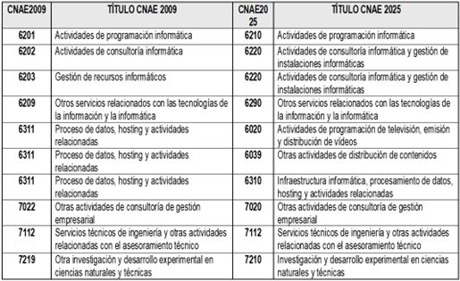 Otro de los requisitos para ser beneficiario de las ayudas es que la actividad de la empresa esté encuadrada en alguno de los epígrafes de la CNAE 2009 o 2025 según la relación que se enumera: