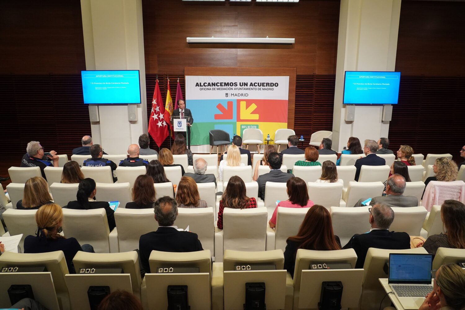 El encuentro ha sido inaugurado por el delegado de Urbanismo, Medio Ambiente y Movilidad, Borja Carabante, quien ha destacado la importancia de la mediación como “elemento transformador de la administración y de la sociedad” y como “alternativa al ámbito judicial”. Ha subrayado, asimismo, la capacidad de esta herramienta a la hora de “reducir la litigiosidad, mejorar la eficiencia del propio Ayuntamiento y poner en valor la resolución de conflictos”, logrando así una administración más “cercana y transparente”.