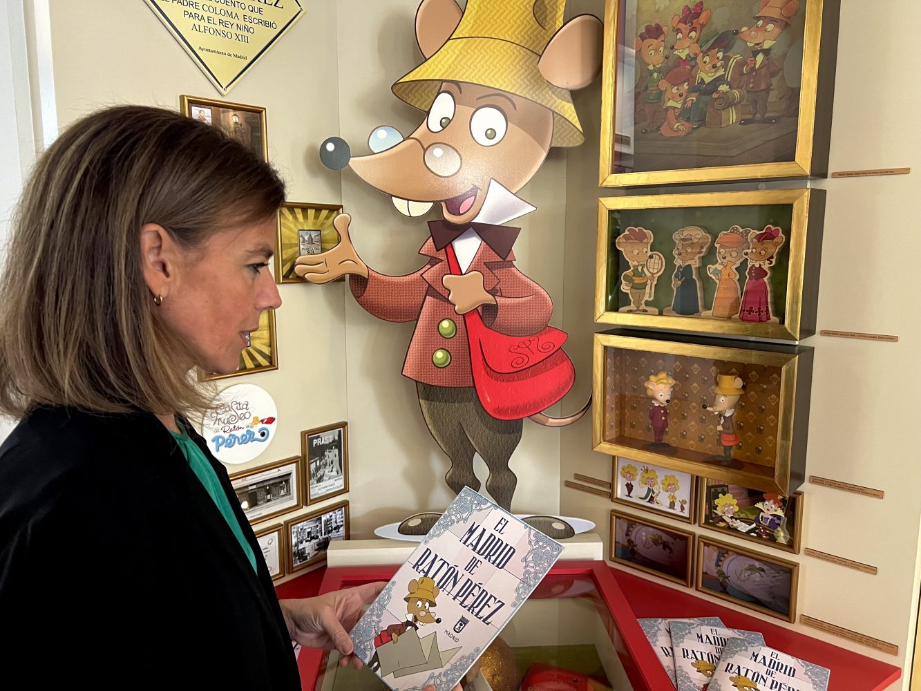 La concejala delegada de Turismo, Almudena Maíllo, con el materia de la campaña de turismo familiar y su embajador infantil, Ratón Pérez
