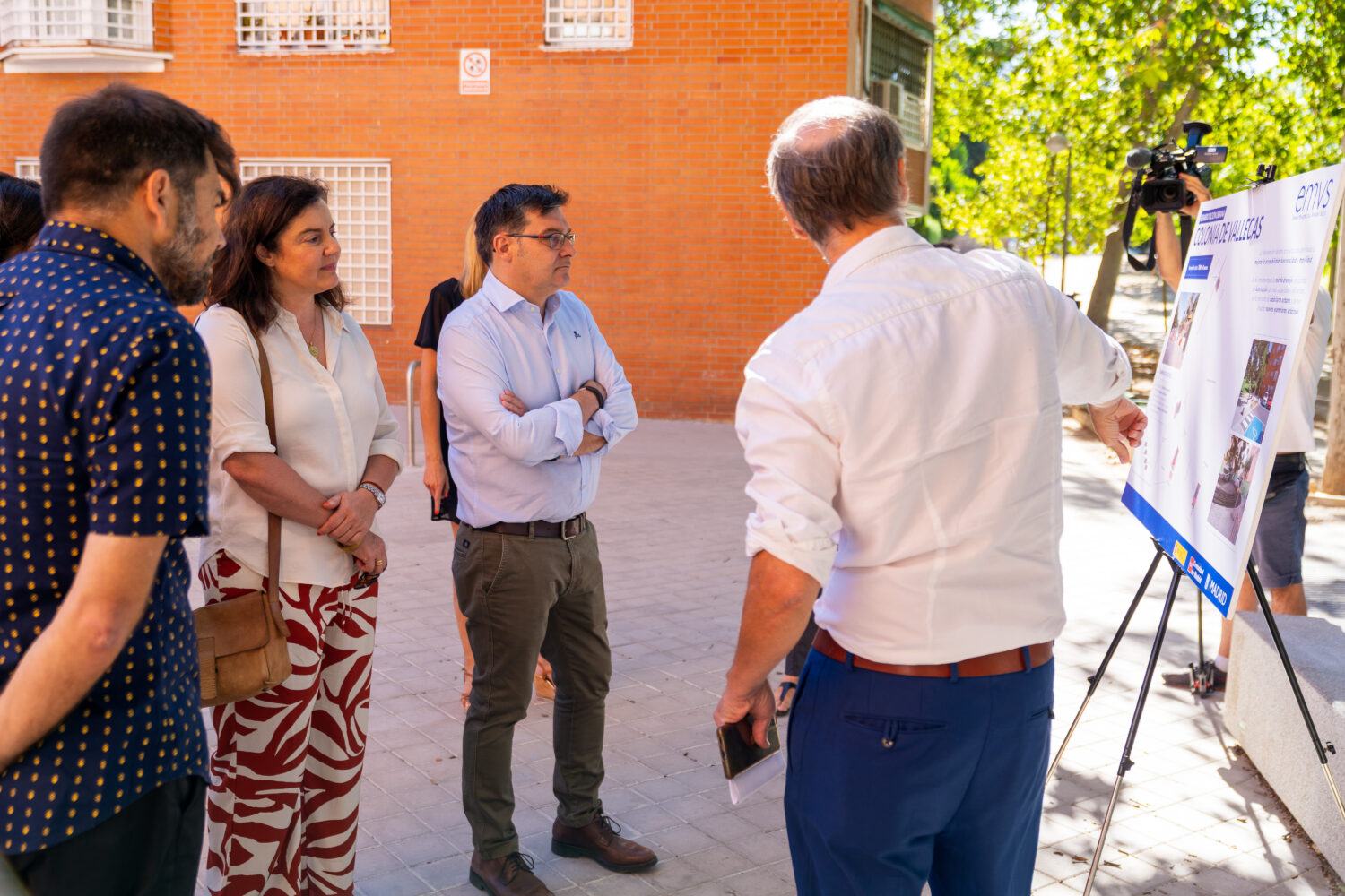 El delegado de Políticas de Vivienda y presidente de EMVS Madrid, en su visita a las obras de rehabilitación de la Colonia de Vallecas
