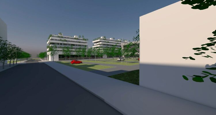 Recreación de la transformación del terreno en un ámbito de viviendas y zonas verdes