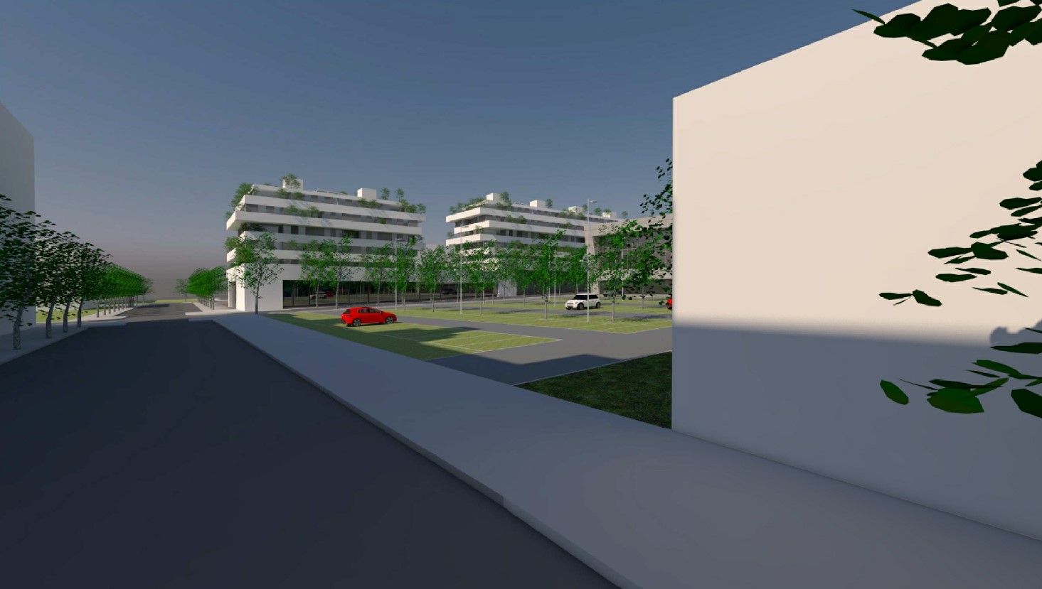 Recreación de la transformación del terreno en un ámbito de viviendas y zonas verdes