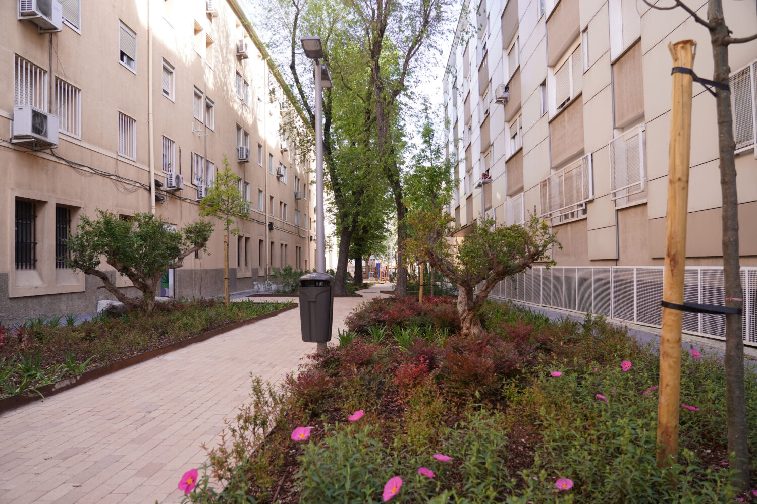 Uno de los principales avances del plan ha sido la puesta en marcha de instrumentos que permiten la regularización jurídica de los espacios interbloque, ámbitos de uso público con titularidad indefinida en los que hasta ahora no era posible intervenir. Esta herramienta hace viable la actuación municipal en zonas con importantes problemas de seguridad, ya que en muchos casos no garantizaban el acceso de los servicios de emergencia, dificultando una respuesta rápida ante situaciones de riesgo. Su adecuación permite mejorar la accesibilidad, facilitar la intervención de los equipos de emergencia y reforzar la seguridad de los vecinos.