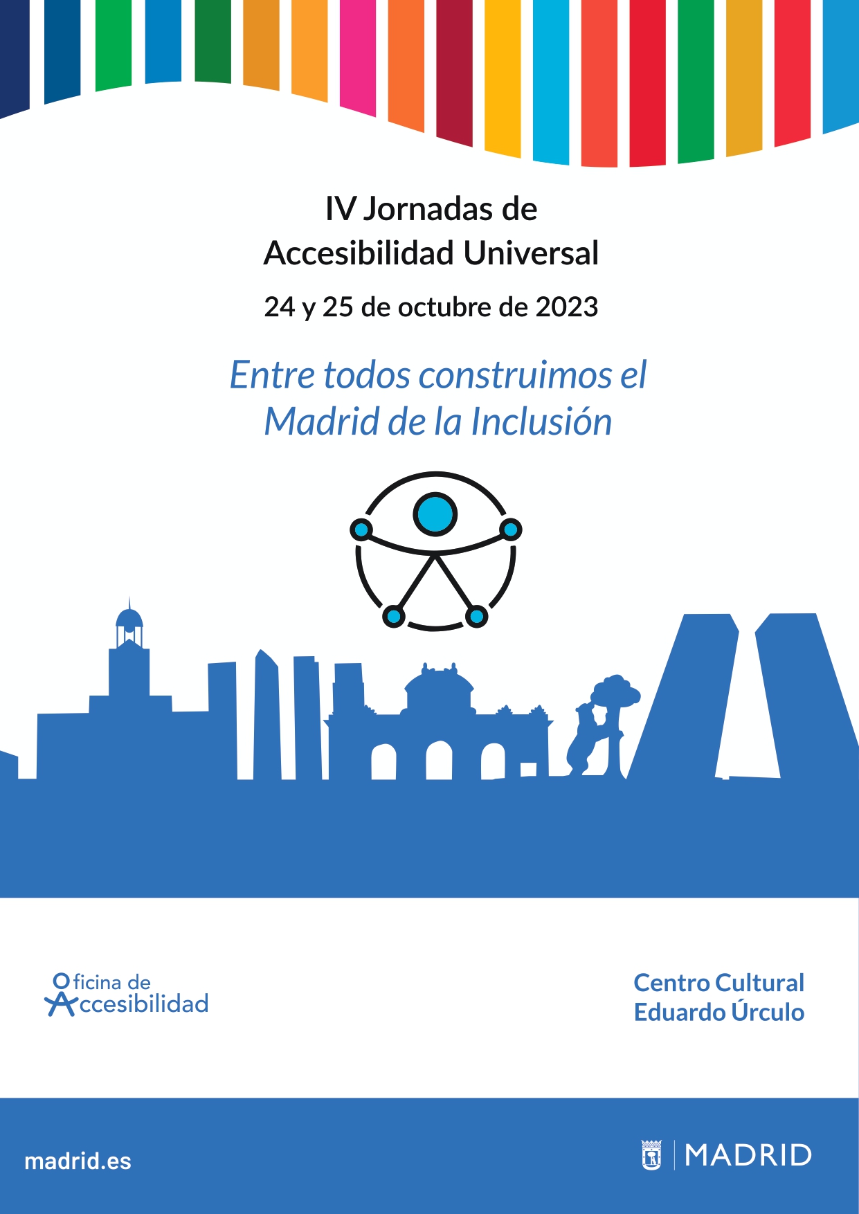 La Oficina de Accesibilidad del Ayuntamiento de Madrid celebrará los próximos días 24 y 25 de octubre la IV edición de las Jornadas de Accesibilidad en el Centro Cultural Eduardo Úrculo bajo el lema ‘Entre todos construimos el Madrid de la inclusión’. El programa pondrá el foco en el trabajo realizado en materia de accesibilidad por el Gobierno municipal, atendiendo a la necesidad de comunicar e informar a la ciudadanía de una manera más amplia de las medidas que se están llevando a cabo, para que puedan disponer de ellas en condición de igualdad, tal y como recoge el Plan Estratégico de Accesibilidad Universal para la ciudad de Madrid.