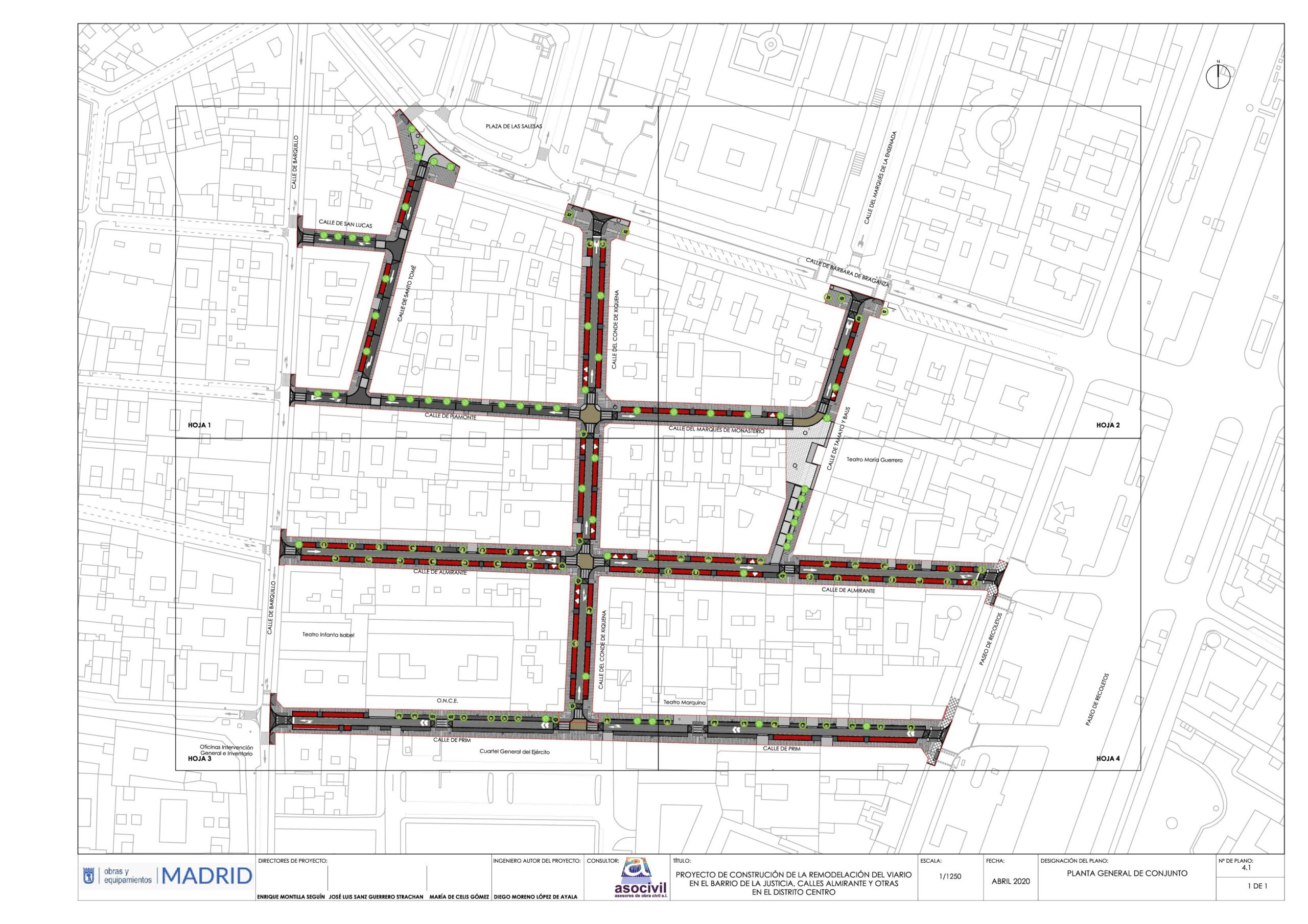 Planta General del Proyecto de Construcción de la Remodelación del viario en el Barrio de la Justicia, calles Almirante y otras en el distrito de Centro