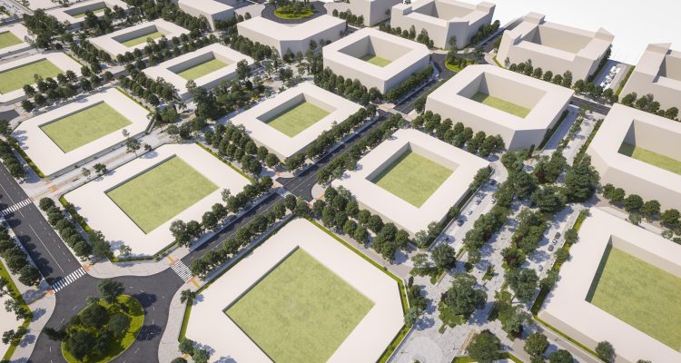 El diseño inicial de la urbanización se ha modificado para la creación de supermanzanas. Estas constituyen unidades urbanas compuestas por varias manzanas básicas cuyos viarios interiores están destinados únicamente para el acceso de residentes y cuentan con prioridad peatonal y abundantes espacios estanciales ajardinados.