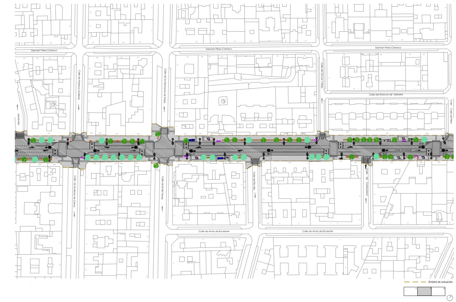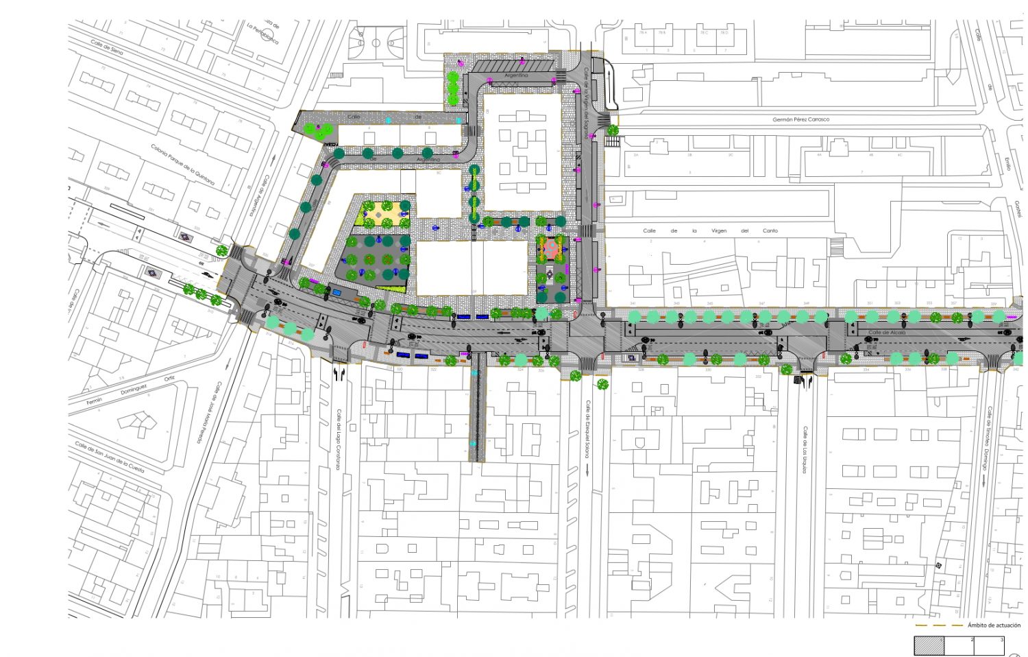 En concreto, la reforma abarcará el tramo de la calle de Alcalá comprendido entre la calle de Argentina y la plaza de Ciudad Lineal, así como la calle de Argentina (en su tramo frente a los números 6 y 8), la calle de Virgen del Sagrario (en su tramo frente a los números 2, 3, 4, 6 y 8), el callejón de Juan de Mata Gómez y la Plaza de Quintana.