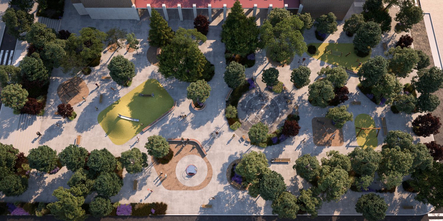 Recreación digital del proyecto de remodelación de la plaza San Cristóbal de Ciudad Pegaso