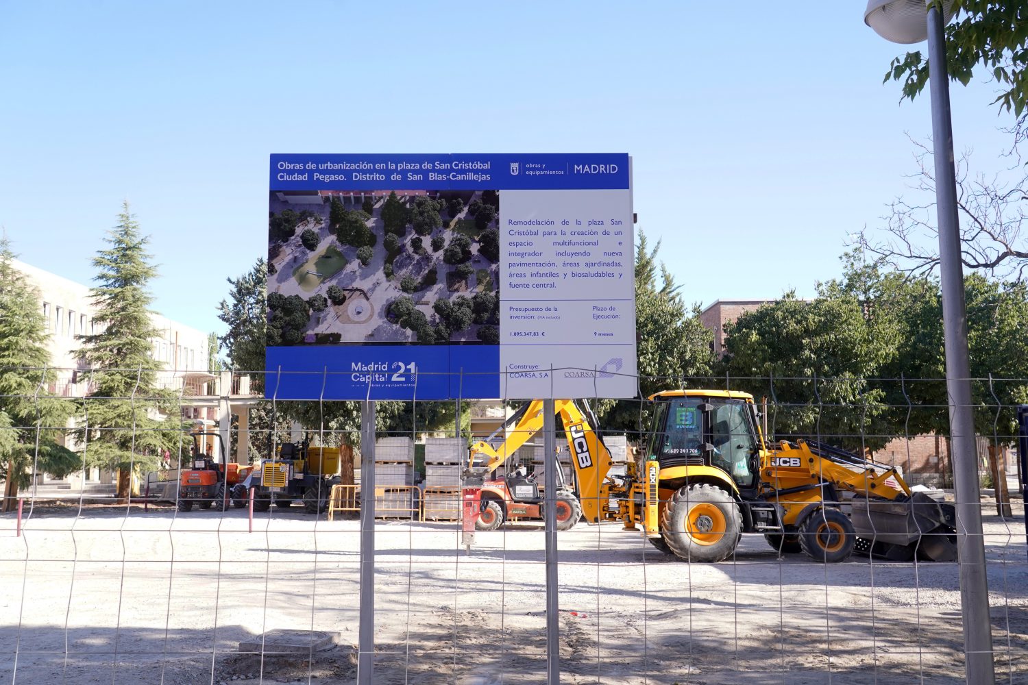La remodelación de la plaza San Cristóbal, que supone una inversión de 1,1 millones de euros y se extenderá hasta el segundo trimestre de 2025, tiene como finalidad la creación de un área multifuncional e integradora que logre ser el espacio público principal de Ciudad Pegaso, tal y como se programó en la concepción de esta colonia, y la mejora de la accesibilidad del ámbito.