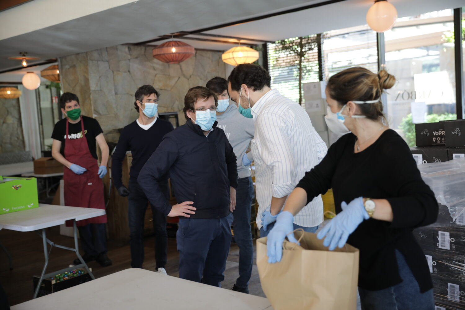 El alcalde, José Luis Martínez-Almeida, ha recibido esta mañana el camión con los alimentos en el restaurante Carbón Negro que, junto al Grupo Larrumba, preparará 8.000 comidas semanales para entregar en el hospital de campaña de IFEMA. El alcalde ha agradecido esta donación solidaria a la ciudad de Madrid./