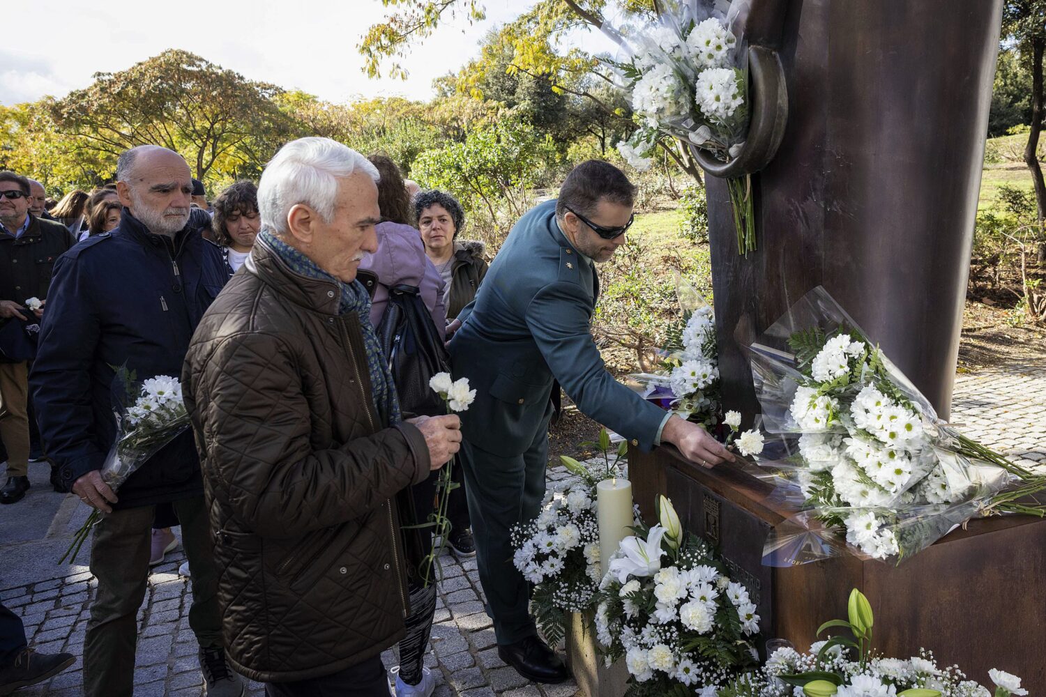 El Ayuntamiento de Madrid ha homenajeado esta mañana a todas las personas que han perdido su vida en las carreteras junto a la escultura de la artista Rosa Serra Puigvert que el alcalde de Madrid, José Luis Martínez-Almeida, inauguró el 11 de noviembre de 2022 en Madrid Río. El delegado de Urbanismo, Medio Ambiente y Movilidad, Borja Carabante, junto a otros miembros del Gobierno municipal y representantes de los grupos políticos y de la asociación de víctimas de seguridad vial Stop Accidentes y de la Asociación para el Estudio de la Lesión Medular Espinal (Aesleme), ha realizado la ya tradicional ofrenda floral a los pies del monumento.