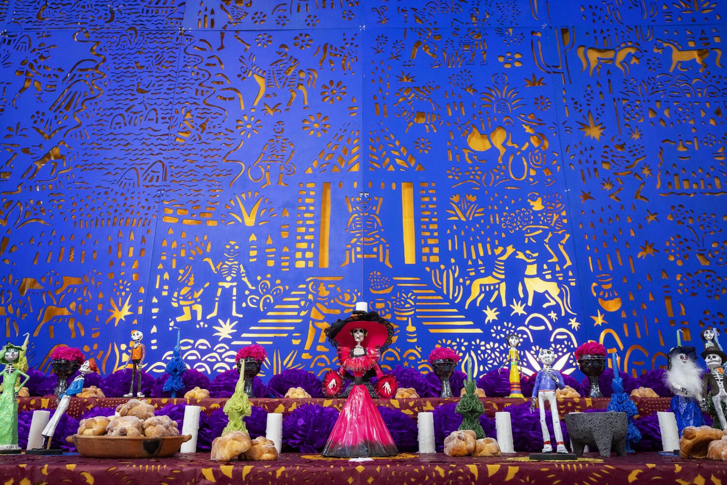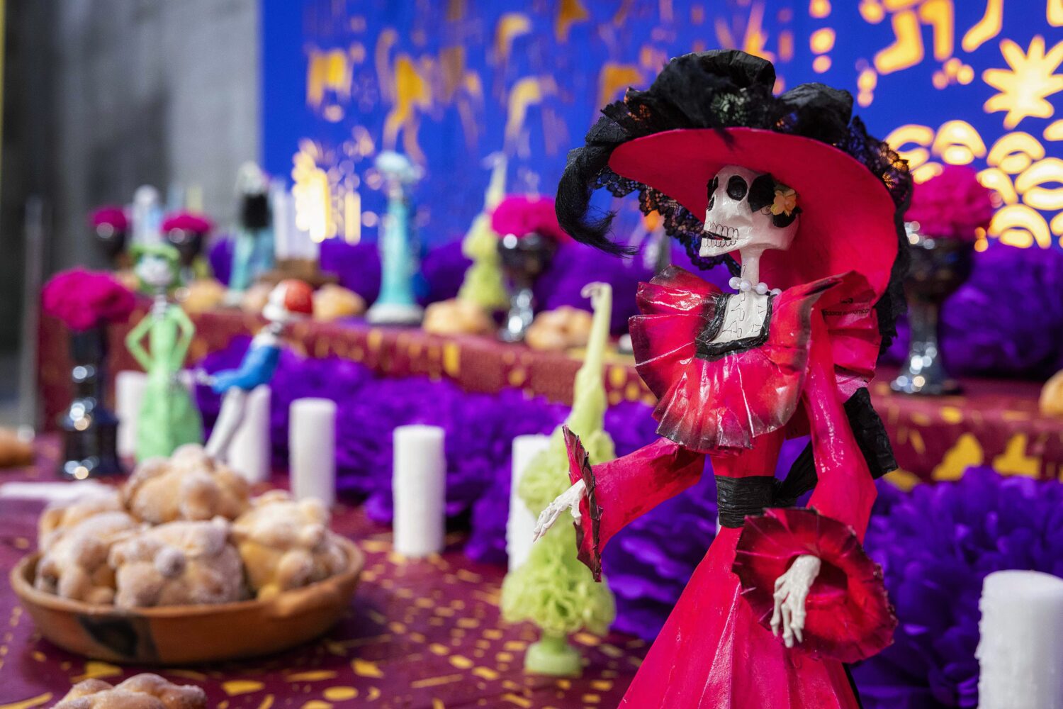 La ofrenda o altar de muertos transforma la nostalgia en celebración, simbolizando el regreso de los difuntos, por unas horas, para visitar a los vivos. Ellos los reciben con un ritual colorido y amoroso para disfrutar juntos de la comida y la fiesta, rindiendo homenaje a la memoria y convirtiendo el luto en alegría.