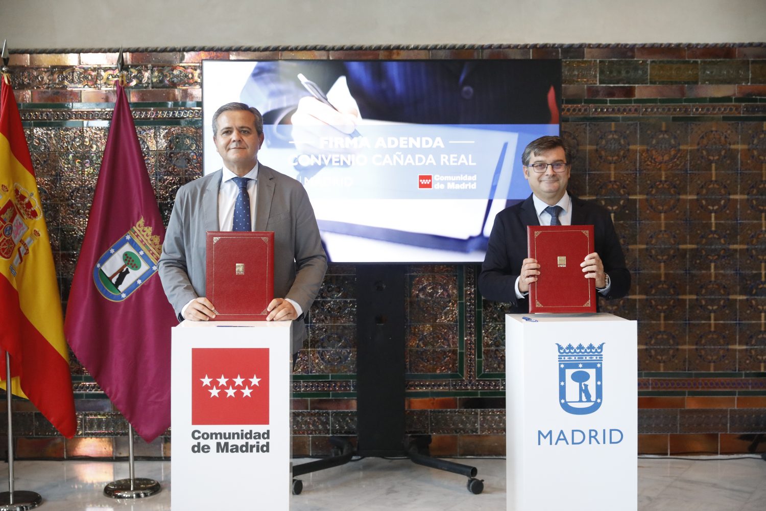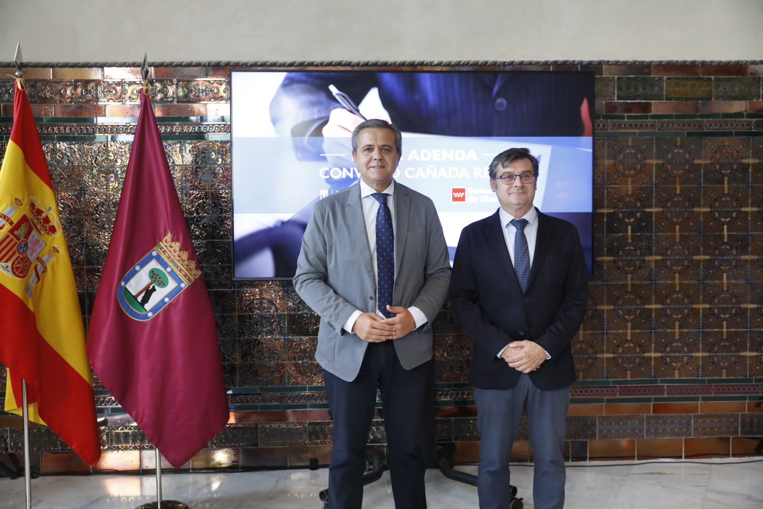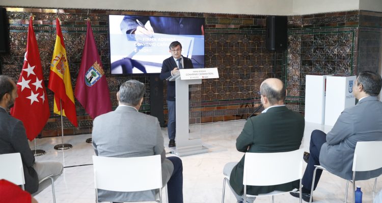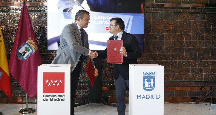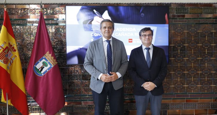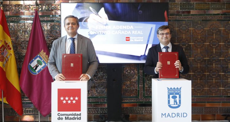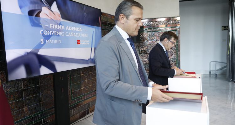 El delegado del Área de Políticas de Vivienda y presidente de la Empresa Municipal de la Vivienda y Suelo, Álvaro González, ha firmado esta mañana con el consejero de Vivienda, Transportes e Infraestructuras de la Comunidad de Madrid, Jorge Rodrigo, un acuerdo para ampliar el ámbito de aplicación territorial de los realojos de las familias de la Cañada Real que se vienen llevando a cabo en los últimos años. El objetivo principal, según González, es “ofrecer la mejor solución a estas familias, darles unas condiciones mejores e ir eliminando este problema que tenemos a lo largo del sector 6 de la Cañada Real y seguir avanzando en la eliminación de la Cañada Real tal y como la conocemos”.