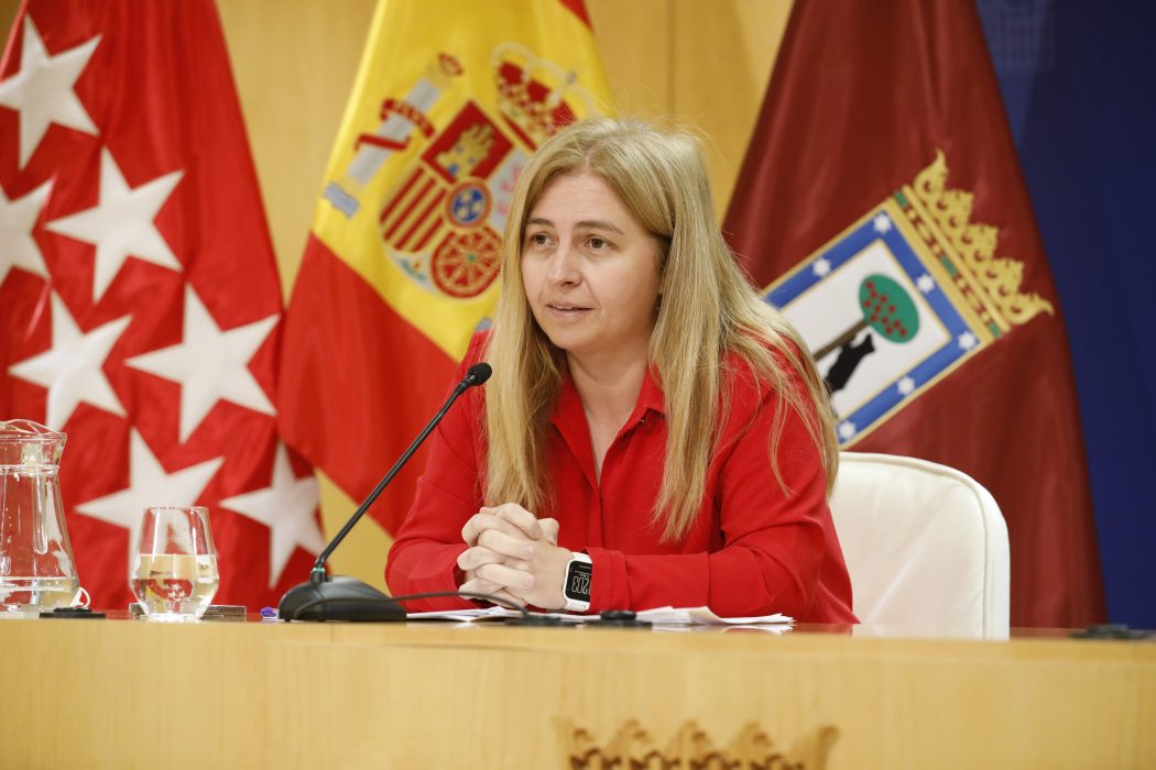 Inmaculada Sanz, portavoz municipal, en la rueda de prensa posterior a la Junta de Gobierno