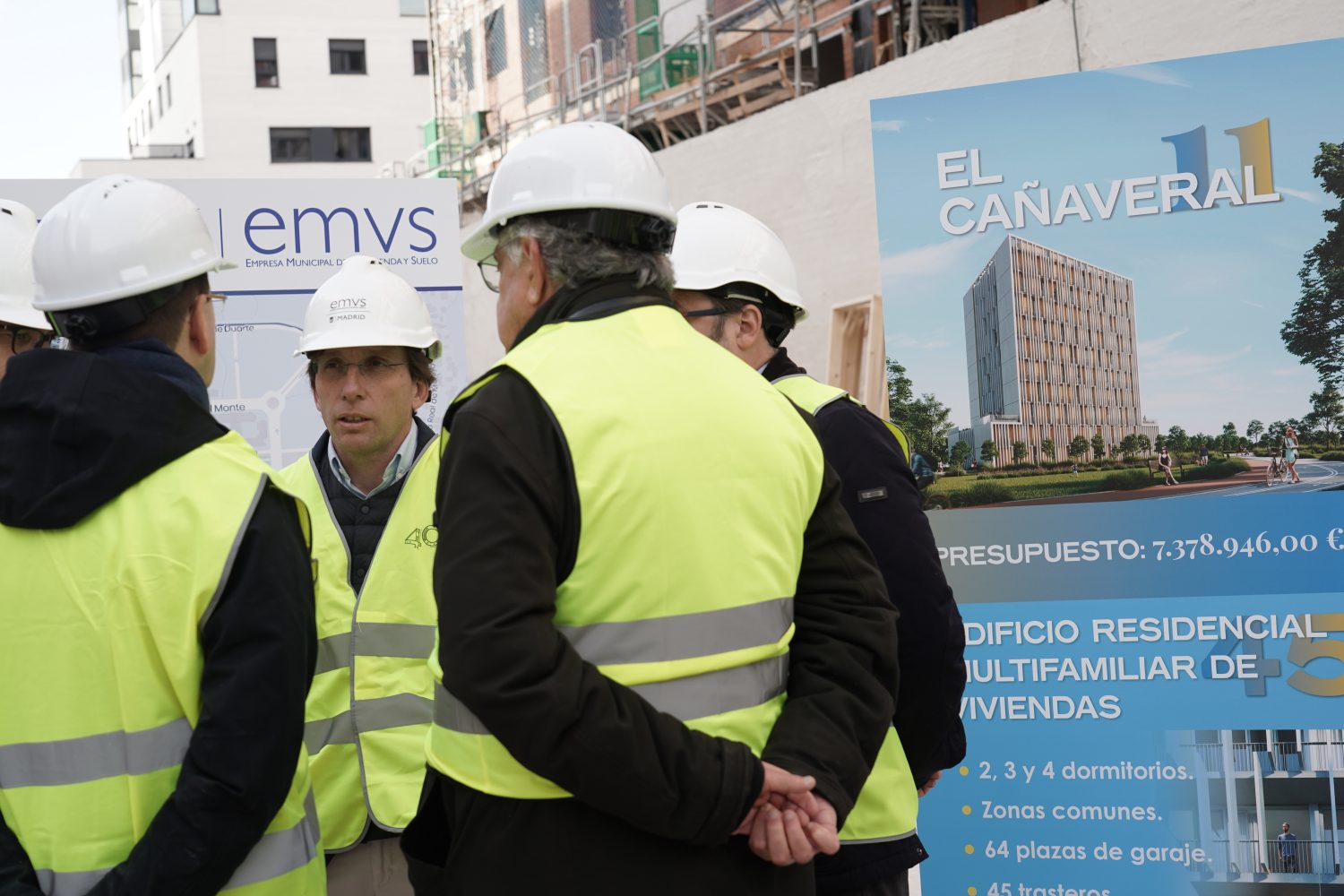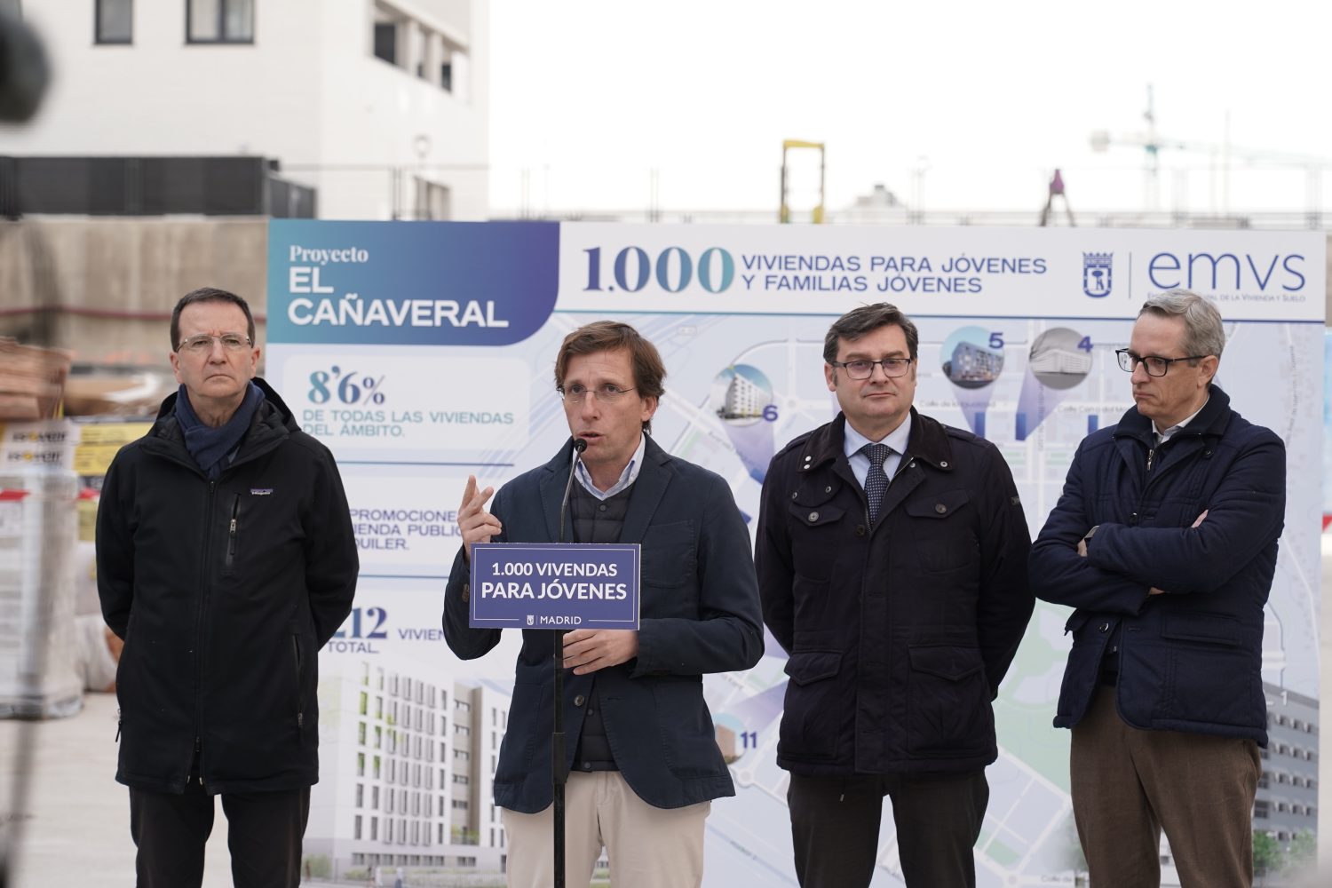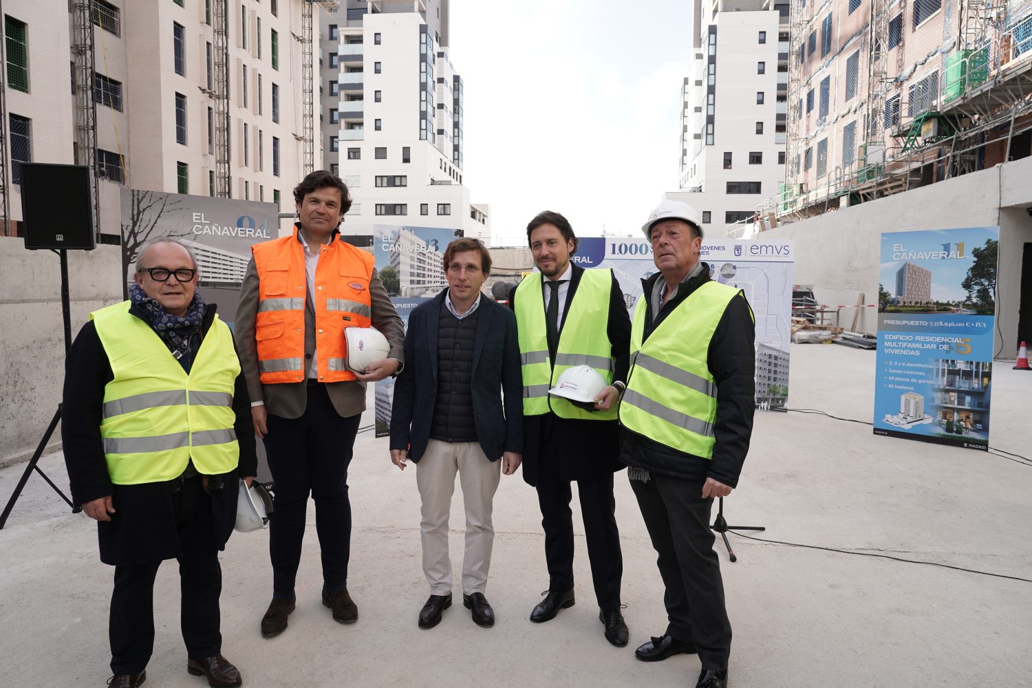 El Ayuntamiento de Madrid destinará al alquiler asequible para jóvenes 1.000 de las 1.212 viviendas que la Empresa Municipal de la Vivienda y Suelo (EMVS) tiene actualmente en distintas fases de ejecución en el barrio de El Cañaveral, distrito de Vicálvaro, uno de los barrios madrileños con más proyección de futuro y donde está prevista la construcción de 14.000 viviendas. Así lo ha señalado esta mañana el alcalde de Madrid, José Luis Martínez-Almeida, en su visita a las obras de una de estas promociones, en la que ha estado acompañado del concejal delegado de Vivienda y presidente de la EMVS, Álvaro González, y el concejal de Vicálvaro, Martín Casariego.