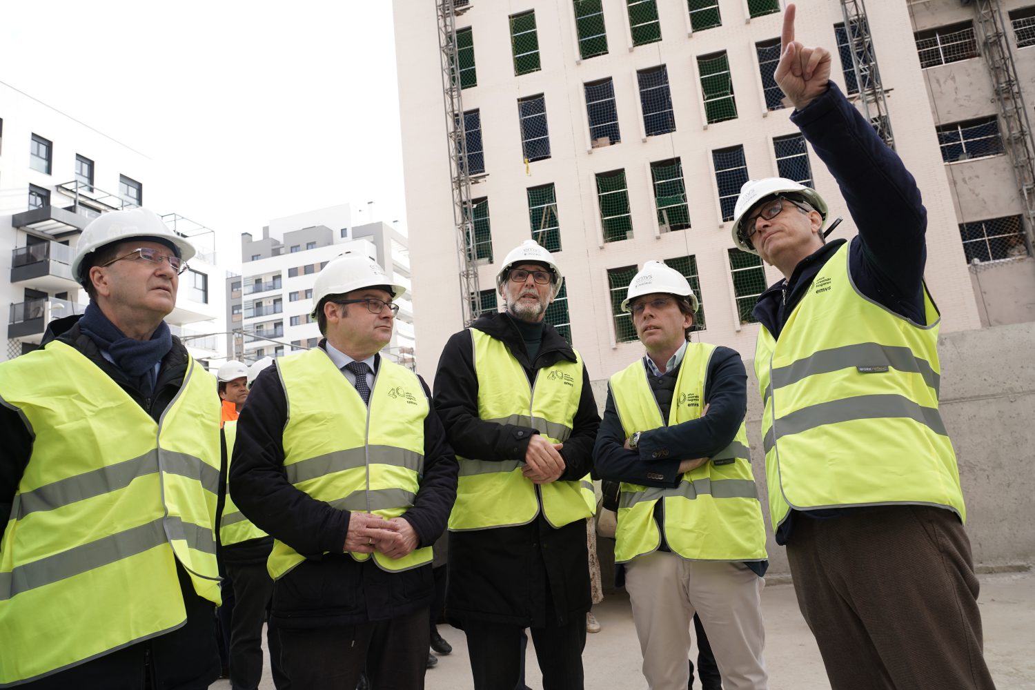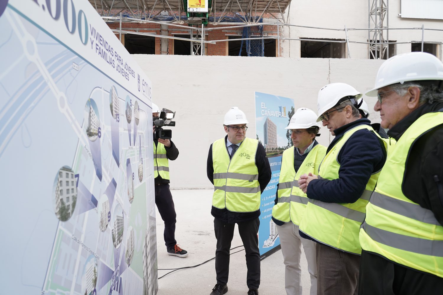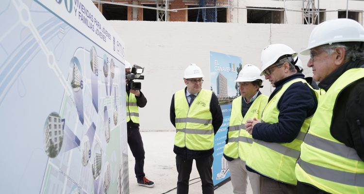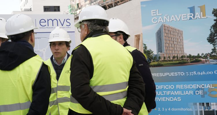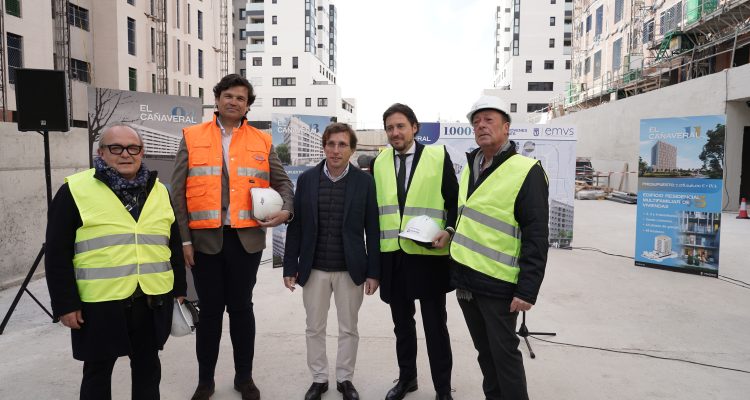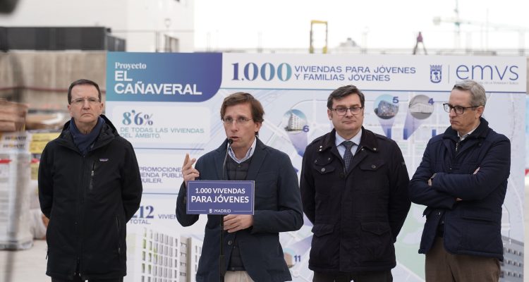 El Ayuntamiento de Madrid destinará al alquiler asequible para jóvenes 1.000 de las 1.212 viviendas que la Empresa Municipal de la Vivienda y Suelo (EMVS) tiene actualmente en distintas fases de ejecución en el barrio de El Cañaveral, distrito de Vicálvaro, uno de los barrios madrileños con más proyección de futuro y donde está prevista la construcción de 14.000 viviendas. Así lo ha señalado esta mañana el alcalde de Madrid, José Luis Martínez-Almeida, en su visita a las obras de una de estas promociones, en la que ha estado acompañado del concejal delegado de Vivienda y presidente de la EMVS, Álvaro González, y el concejal de Vicálvaro, Martín Casariego.