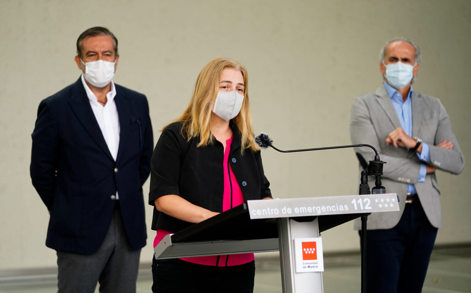 A la reunión han asistido los consejeros de Sanidad, Enrique Ruiz Escudero, y de Justicia, Interior y Víctimas del Terrorismo de la Comunidad de Madrid, Enrique López, y el delegado del Gobierno, José Manuel Franco. Por parte municipal, Inmaculada Sanz ha estado acompañada del director general de Emergencias, Enrique López Ventura; el director general de la Policía Municipal, Pablo Enrique Rodriguez; y la subdirectora de SAMUR-Protección Civil, Carmen Camacho. En la reunión también han participado responsables de seguridad y protección civil de los ayuntamientos de Fuenlabrada, Humanes; Moraleja de Enmedio, Parla, Getafe, San Sebastián de los Reyes y Alcobendas, los municipios afectados por las medidas aprobadas por el Gobierno regional. /