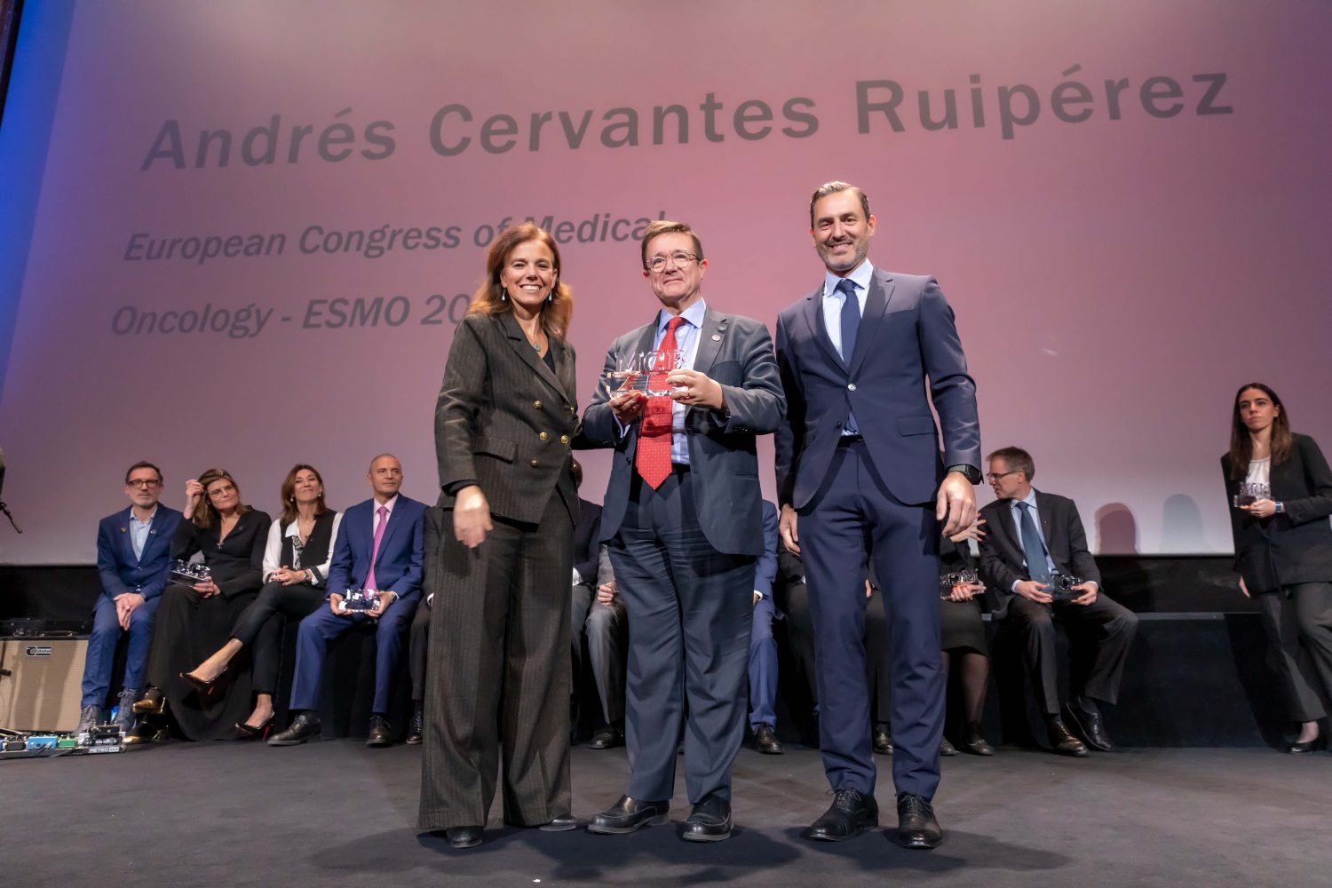 En el encuentro, que tuvo lugar en los históricos Cines Callao, se distinguió a un total de 17 prescriptores del turismo congresual, que representan a 13 de los congresos más destacados del ámbito de la ciencia, la tecnología, la ingeniería, la medicina o la aviación que ha albergado Madrid este 2023. Entre los homenajeados en esta ocasión está el presidente de la Sociedad Europea de Oncología Médica (ESMO), el doctor Andrés Cervantes, cuyo congreso congregó a 33.000 delegados en la capital el pasado mes de octubre, todo un éxito de participación para esta cita.
