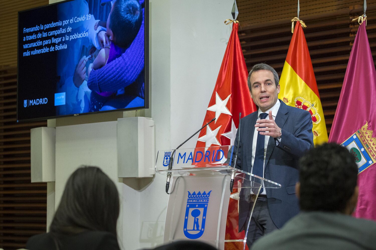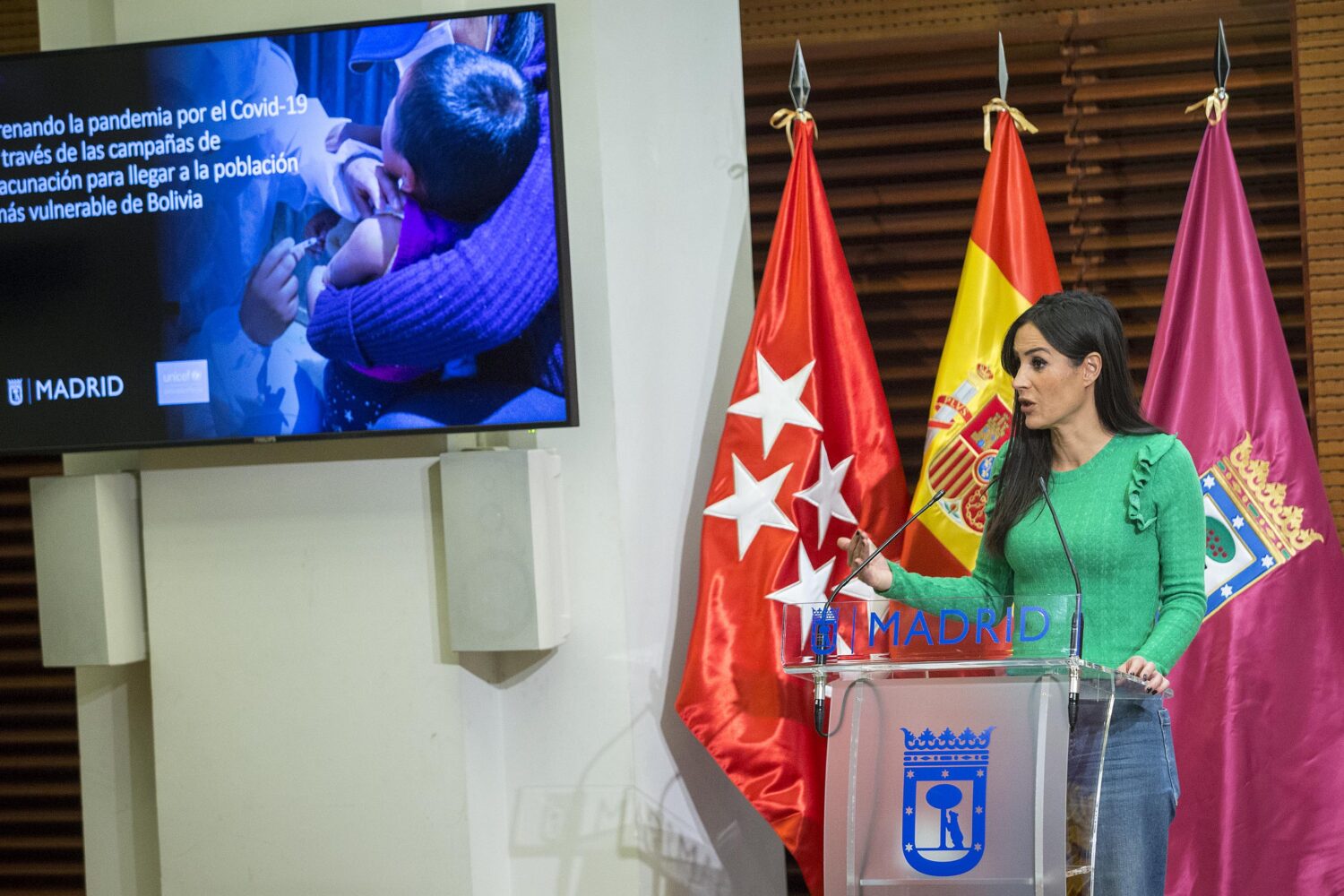 La vicealcaldesa de Madrid, Begoña Villacís, ha presentado este martes el acuerdo formalizado entre el Ayuntamiento y UNICEF comité español para subvencionar con un millón de euros la vacunación contra la COVID-19 en Bolivia. La ayuda irá destinada íntegramente al conocido como Mecanismo COVAX y al acelerador del acceso a las herramientas contra la COVID-19 (Acelerador ACT) para dos millones de personas que viven en zonas de difícil acceso en el país andino.