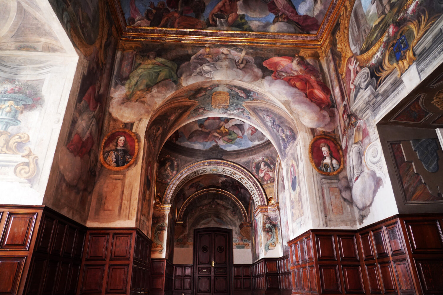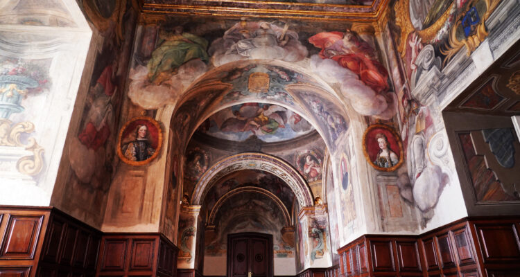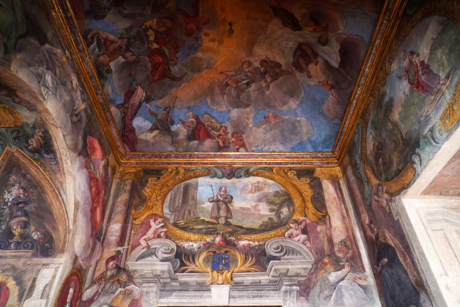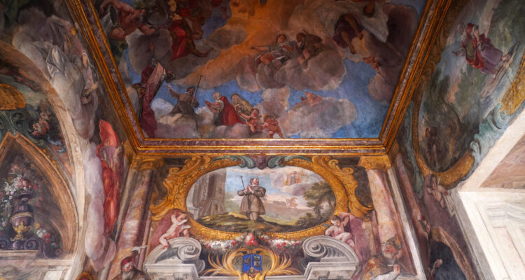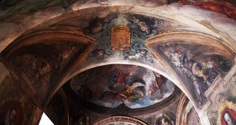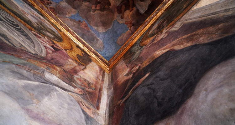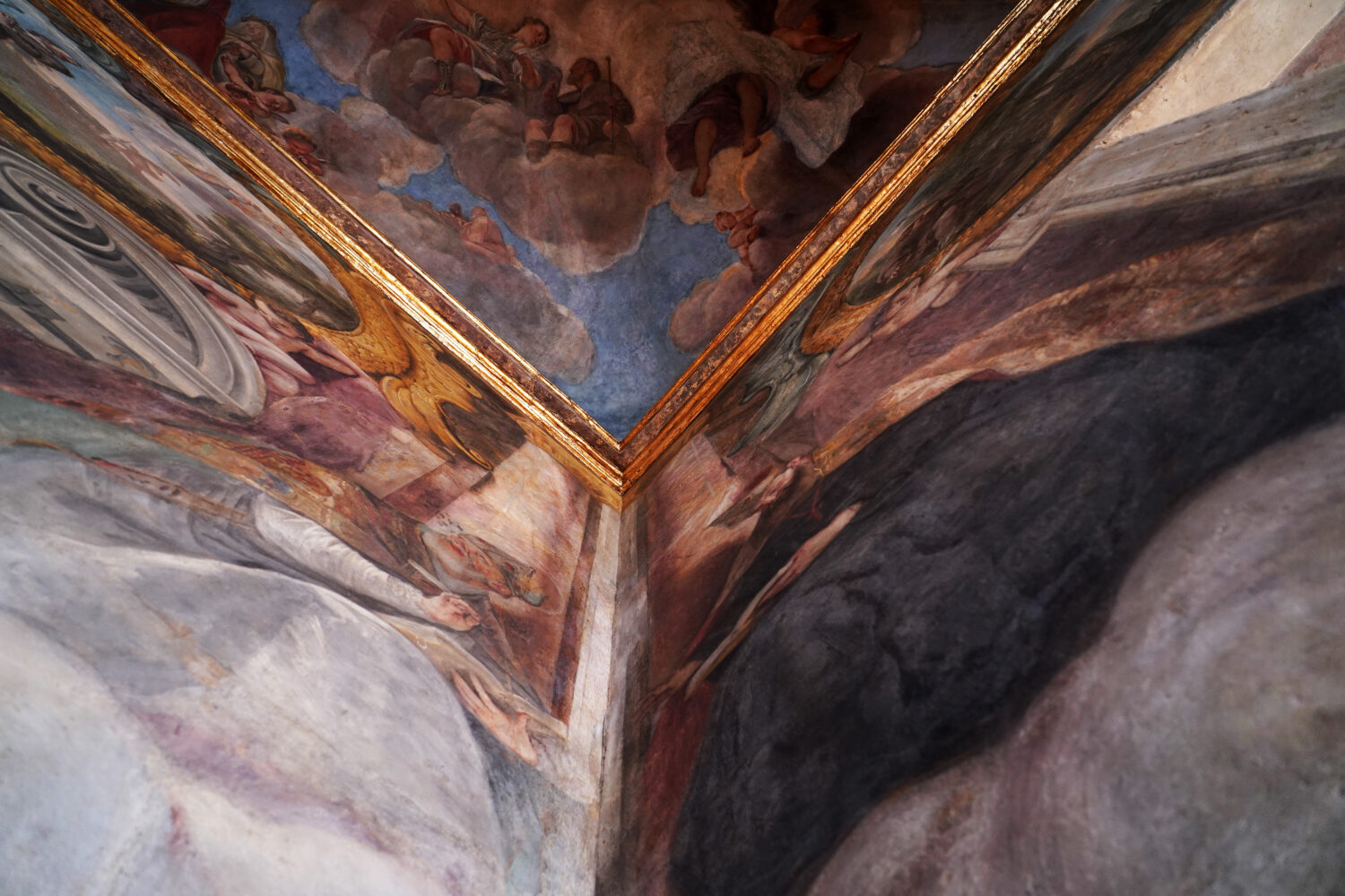 Diferentes imágenes de los frescos restaurados del Oratorio de la Casa de la Villa