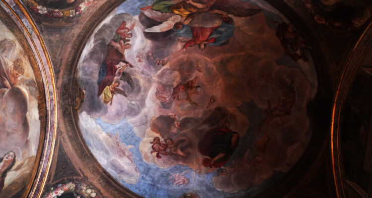 Las fuentes estilísticas y pictóricas de Palomino fueron, por un lado, las enseñanzas de Claudio Coello en las obras realizadas para el Alcázar de Madrid; por otro, el influjo del napolitano Luca Giordano, que había llegado a España llamado por Carlos II para decorar las bóvedas del Monasterio de San Lorenzo de El Escorial, lo que permitió al cordobés completar su formación de fresquista junto a Coello, dando muestra de ello al utilizar la técnica del fresco en las pinturas del Oratorio. /