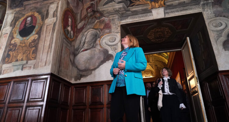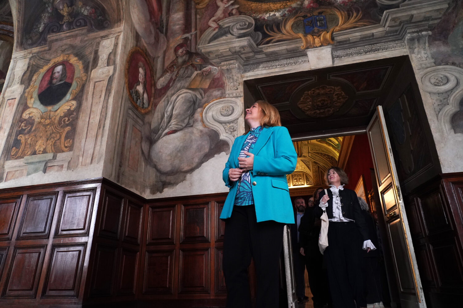 La vicealcaldesa de Madrid, Inma Sanz, acompañada de la delegada de Cultura, Turismo y Deporte, Marta Rivera de la Cruz, ha presentado hoy en el Oratorio de la Casa de la Villa el resultado de los trabajos de restauración de sus pinturas murales. Esta intervención, promovida por la Dirección General de Patrimonio Cultural y Paisaje Urbano del Ayuntamiento, ha contado con una inversión de 241.000 euros y un plazo de ejecución de nueve meses. Con ella, culmina un proyecto destinado a preservar uno de los conjuntos pictóricos más singulares del patrimonio municipal, obra del maestro Antonio Palomino, realizado en 1696.