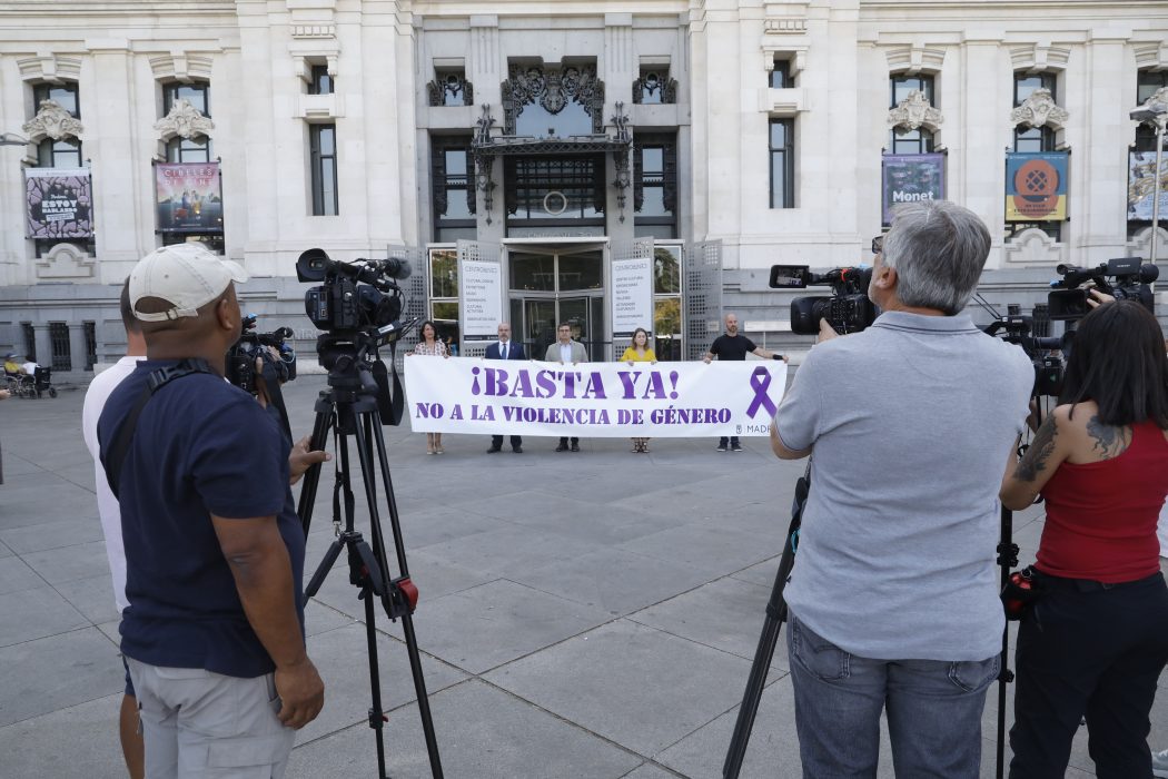El delegado de Políticas de Vivienda, Álvaro González, acompañado de representantes de los grupos políticos municipales y del delegado del Gobierno en Madrid, Francisco Martín, ha presidido este mediodía en el Palacio de Cibeles el minuto de silencio convocado por el Ayuntamiento como muestra de repulsa y condena por el asesinato, presuntamente por violencia de género, de una vecina del distrito de Moratalaz.