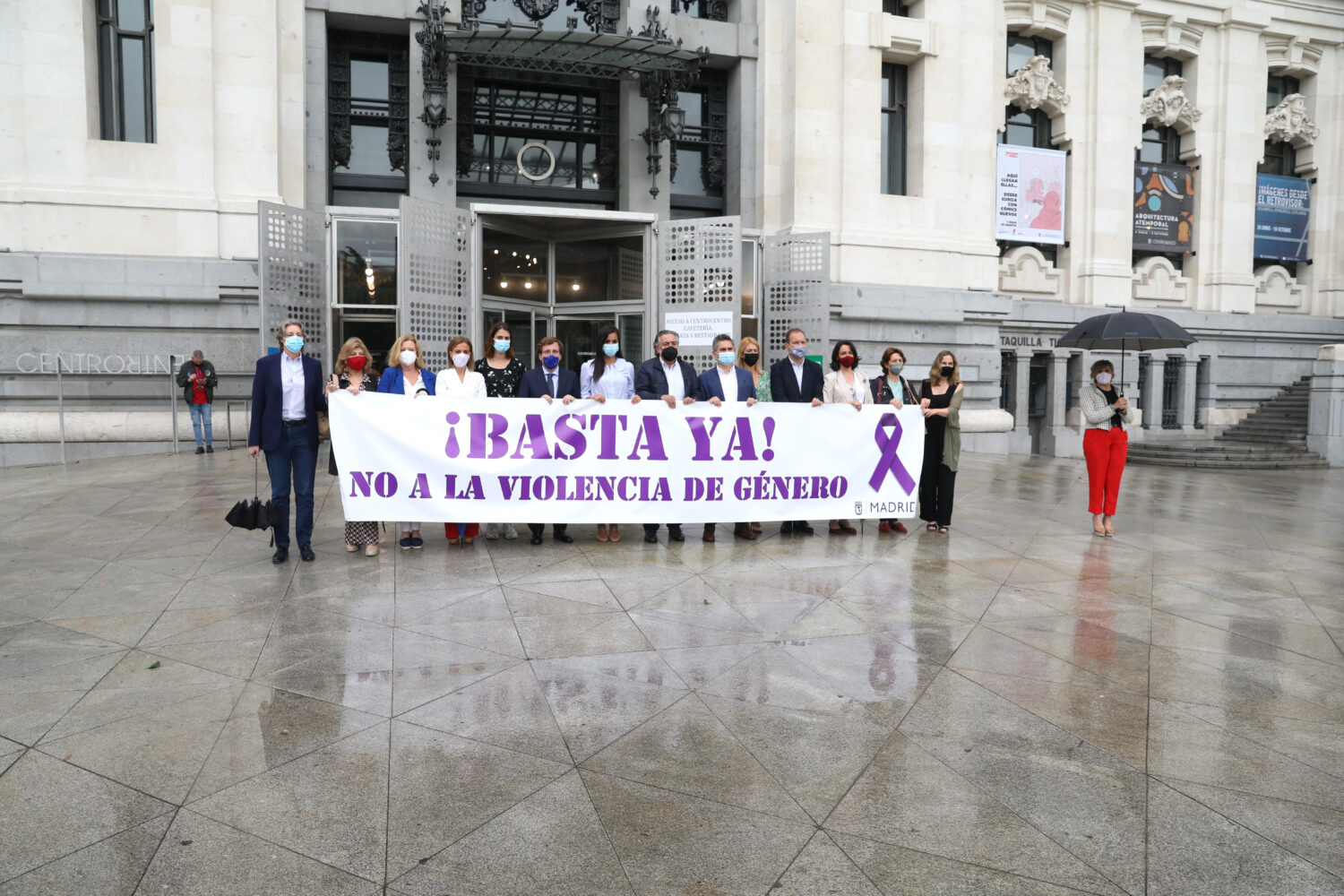 El alcalde de Madrid, José Luis Martínez-Almeida, junto a la vicealcaldesa, Begoña Villacís, y otros miembros del equipo de Gobierno, así como representantes de los grupos políticos municipales, ha participado este mediodía en un minuto de silencio como muestra de repulsa y condena por el asesinato, presuntamente por violencia de género, de una vecina del distrito de Moratalaz.