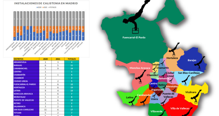 La ciudad de Madrid cuenta este año con 80 nuevas instalaciones deportivas para hacer ejercicio al aire libre. Entre enero y junio, el Ayuntamiento de Madrid, a través del Área de Medio Ambiente y Movilidad que dirige Borja Carabante, ha levantado diversas instalaciones de postes y barras en parques y zonas verdes repartidas por toda la ciudad para la práctica de calistenia, un sistema de ejercicios físicos que trabajan con el propio peso corporal y que se realiza al aire libre. La iniciativa se ha llevado a cabo con una inversión de 1,6 millones euros.