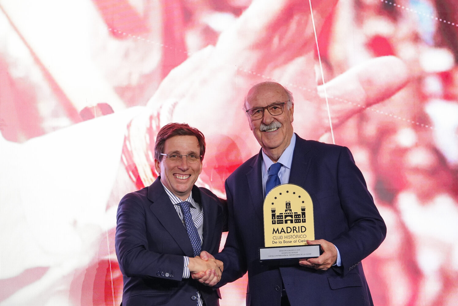 Uno de los momentos más emotivos de la tarde ha sido la entrega de los Premios de los Clubes Históricos 2026, que han reconocido a personas y entidades cuyo trabajo refleja los valores que definen al deporte madrileño. En esta edición, la Mención Honorífica ‘De la Base al Cielo’ ha recaído en Vicente del Bosque como reconocimiento a su trayectoria y contribución a la fortaleza del deporte, desde la base hasta la élite mundial.