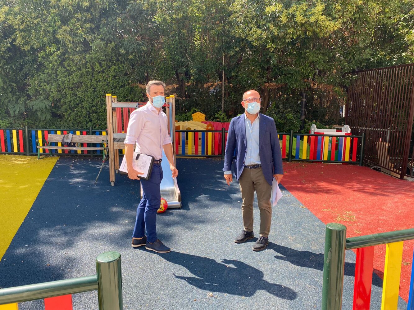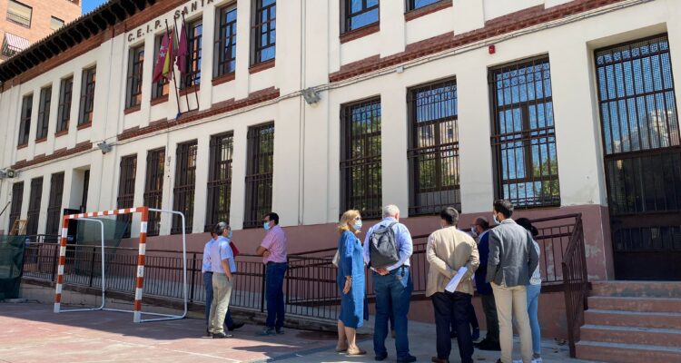 José Fernández, acompañado de la directora del CEIP Santa María, visita las instalaciones y las obras acometidas este verano en este colegio del distrito Centro