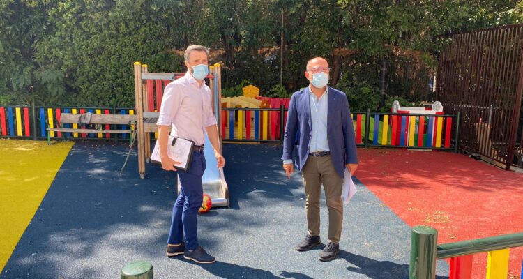 El concejal del distrito de Centro, José Fernández, acompañado por la directora del Colegio de Educación Infantil y Primaria Santa María, ha visitado hoy las instalaciones de este centro para conocer las obras realizadas durante el verano de cara al curso 2021/22, que han contado con una inversión total de 240.000 euros y se han desarrollado en dos fases.