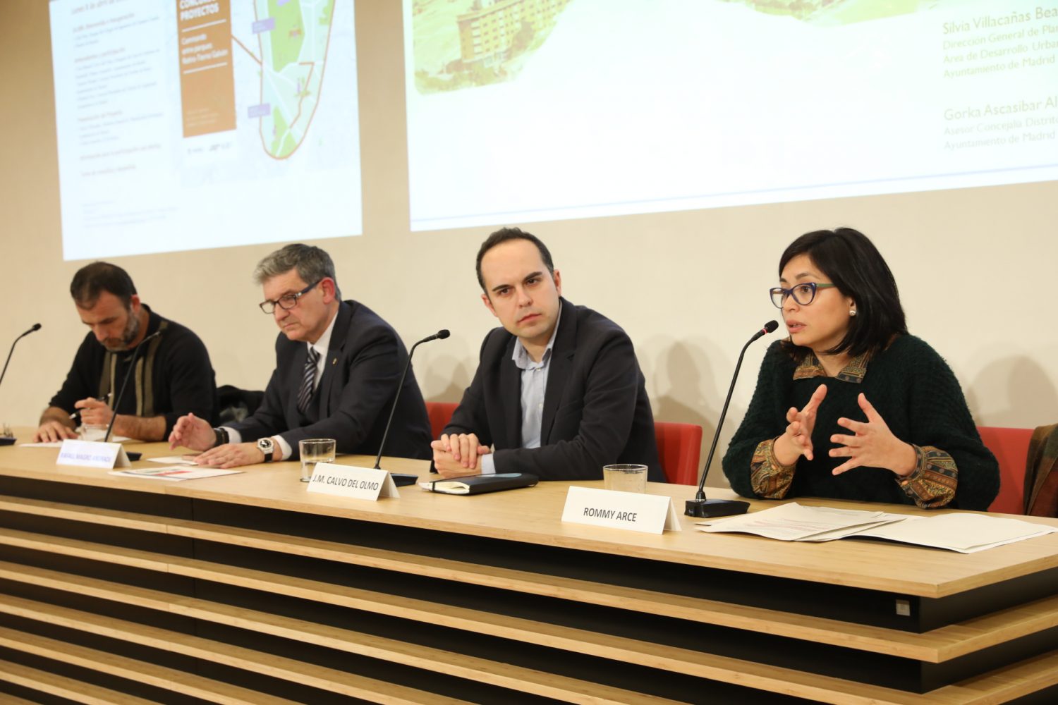 La presentación del concurso y sus objetivos ha tenido lugar esta tarde a cargo del delegado de Desarrollo Urbano Sostenible, José Manuel Calvo, el delegado de Coordinación y Cooperación Público-Social, Nacho Murgui y la concejala del distrito de Arganzuela, Rommy Arce, en la Demarcación de Madrid del Colegio Oficial de Ingenieros de Caminos, Canales y Puertos. Durante el acto, se ha planteado la necesidad de reflexionar y crear un proyecto que resuelva los problemas de conexión y de barreras entre los barrios de los dos distritos, creando un eje urbano y cívico desde el parque de El Retiro con el parque de Enrique Tierno Galván, incorporando en esta transformación el paso elevado de Pedro Bosch, bien reutilizando esta infraestructura o bien demoliendo parte de la misma, en su tramo comprendido entre la calle Granada y su encuentro con la avenida Ciudad de Barcelona.