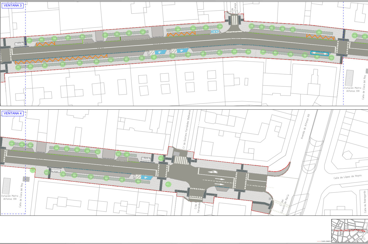 Planos de la calle de López de Hoyos una vez finalizada la remodelación y del tramo de calle afectada