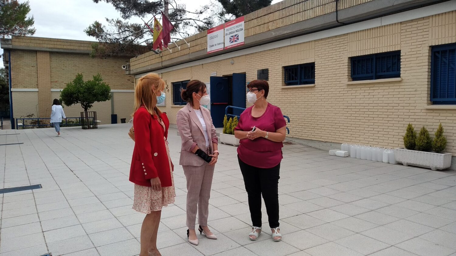 La concejala delegada de Coordinación Territorial, Transparencia y Participación Ciudadana, Silvia Saavedra y la concejala del distrito de Villa de Vallecas, Concha Chapa, han visitado hoy las instalaciones del Colegio de Educación Infantil y Primaria Ciudad de Valencia, en cuyas zonas exteriores se están realizando diferentes obras de mantenimiento por parte de la Unidad Distrital de Colaboración (UDC) Cear Refugio.