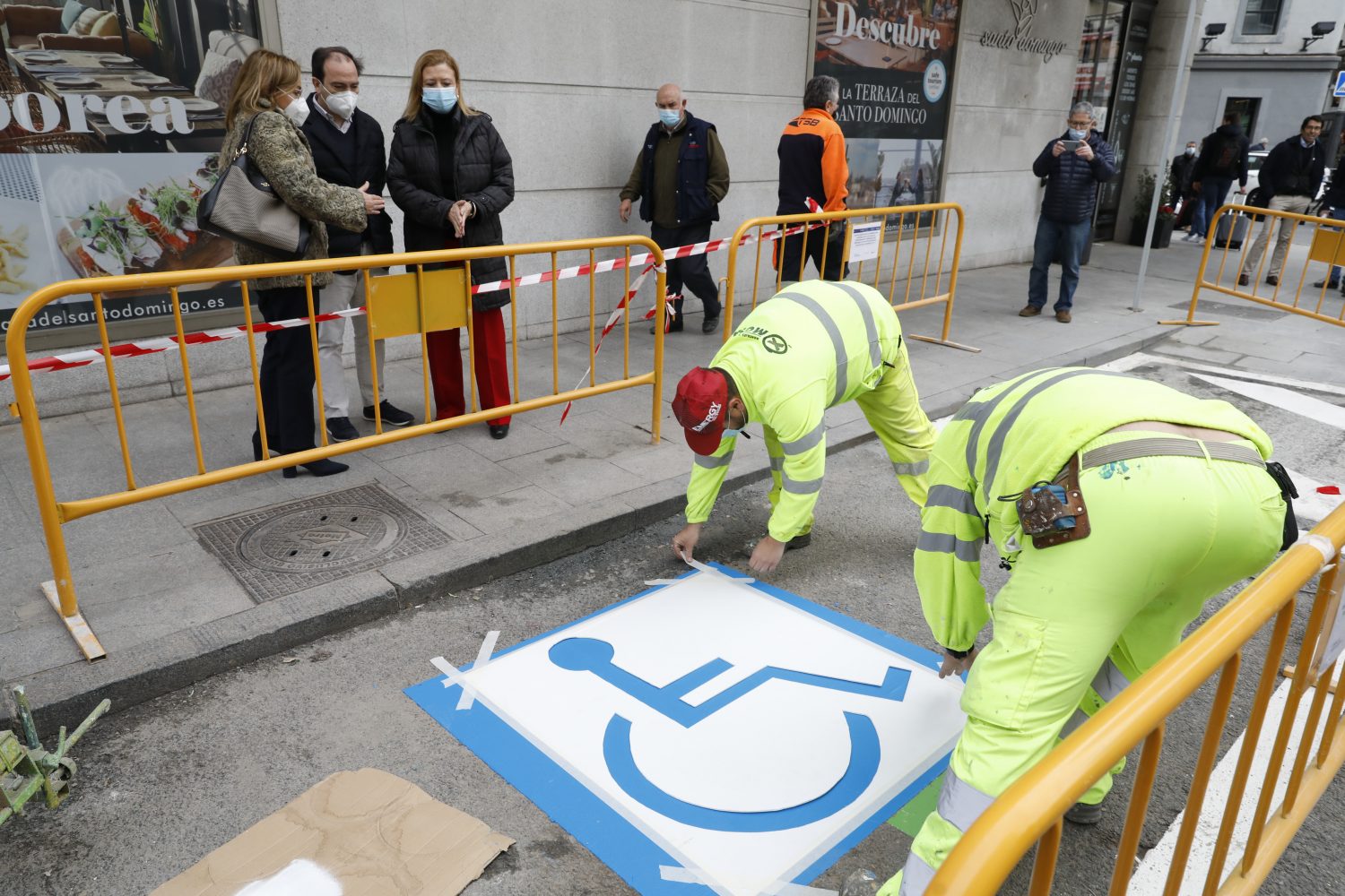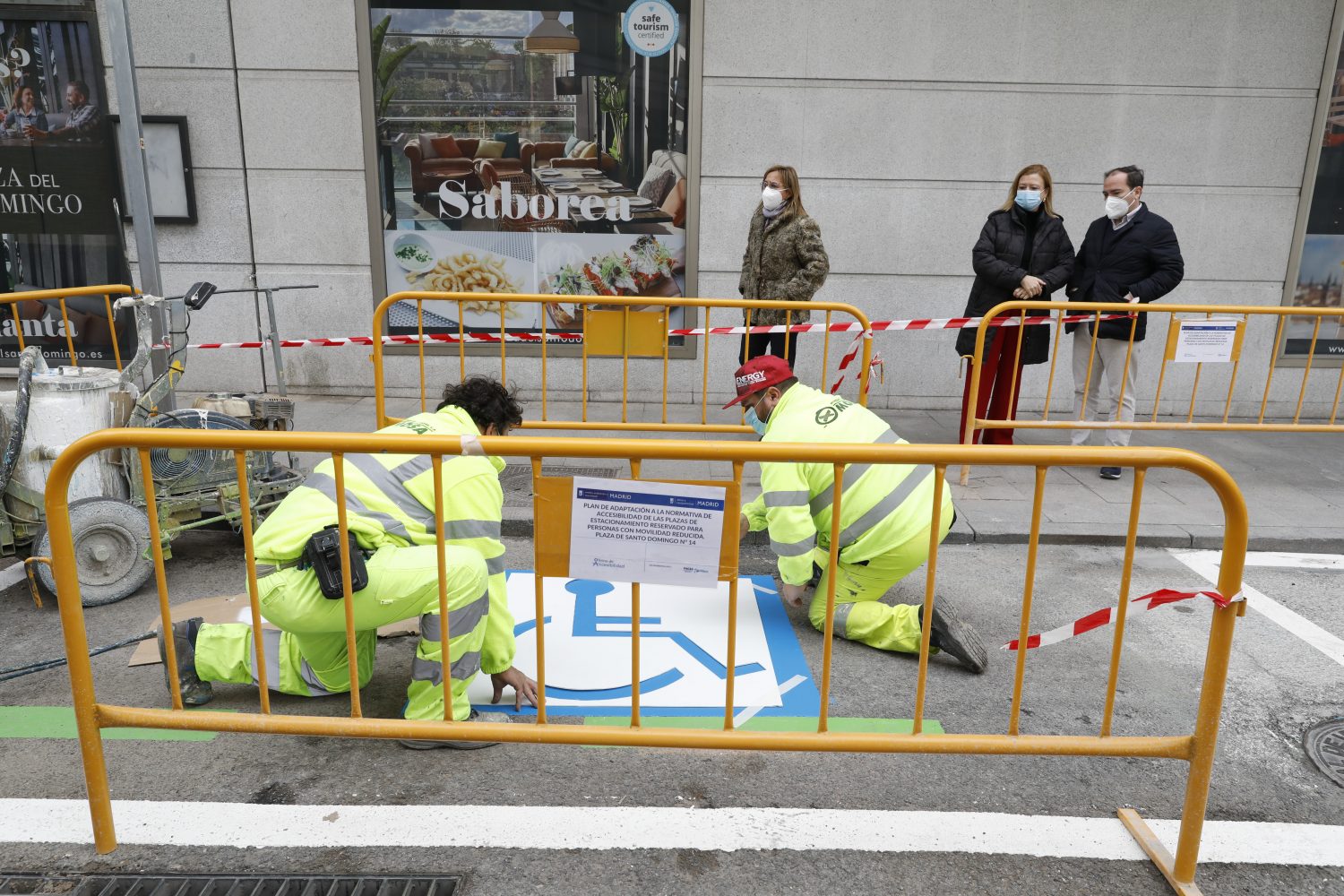 El Ayuntamiento de Madrid adaptará a la normativa de accesibilidad todas las plazas de estacionamiento reservadas para personas con movilidad reducida (PMR) de la ciudad, que en total suman cerca de 14.000. Para ello, el Área de Obras y Equipamientos, en coordinación con el Área de Medio Ambiente y Movilidad, ha puesto en marcha un ambicioso plan de acción que, este año actuará en más de 400 plazas y que, según la delegada de Obras y Equipamientos, se extenderá hasta 2026 y en el que cada año desde 2023 «se adaptarán unas 3.300 plazas mediante actuaciones diferentes”. Así lo ha explicado esta mañana Paloma García Romero que ha supervisado los trabajos de mejora de una de estas plazas junto al delegado de Medio Ambiente y Movilidad, Borja Carabante, y el concejal de Centro, José Fernández.