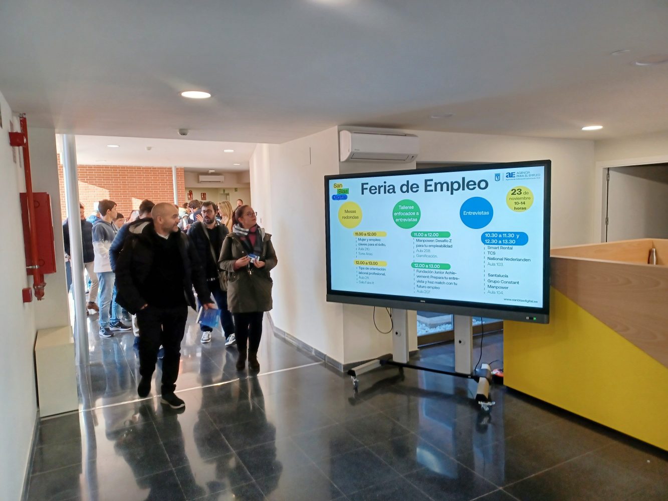 La II Feria de Empleo San Blas Digital, organizada por la Agencia para el Empleo de Madrid, ha reunido en la Escuela de Competencias San Blas Digital a más de 2.000 demandantes de empleo con reclutadores de 15 destacadas empresas del mercado español, entre las que se encuentran, Smart Rental, Nationale Nederlanden, Nuvolar, Santalucía, DHL, Grupo Constant, Idel, Gympass, Fujitsu, Manpower, Fundación Junior Achievement, Adecco, Clece, TCS y Next Job, para ofrecer diversas oportunidades de trabajo.