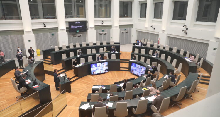 Un solemne minuto de silencio en señal de luto por las víctimas de la pandemia en toda España ha precedido al pleno municipal extraordinario celebrado este jueves en el Palacio de Cibeles para explicar la gestión realizada desde el Ayuntamiento de Madrid con motivo de la crisis sanitaria generada por la COVID-19. Sesión plenaria en la que, por primera vez en la historia del Consistorio, 35 concejales han participado por vía telemática.