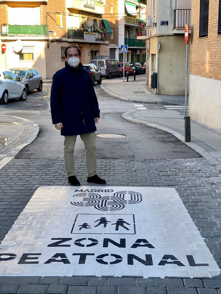 El delegado de Medio Ambiente y Movilidad, Borja Carabante, ha visitado esta mañana en compañía de la concejala del distrito, Concha Chapa, el casco histórico de Villaverde, que ha ganado un espacio de 1.483 m2 de zona cero emisiones. En Puente de Vallecas, los vecinos cuentan también con 1.276 m2 exclusivos para los peatones.