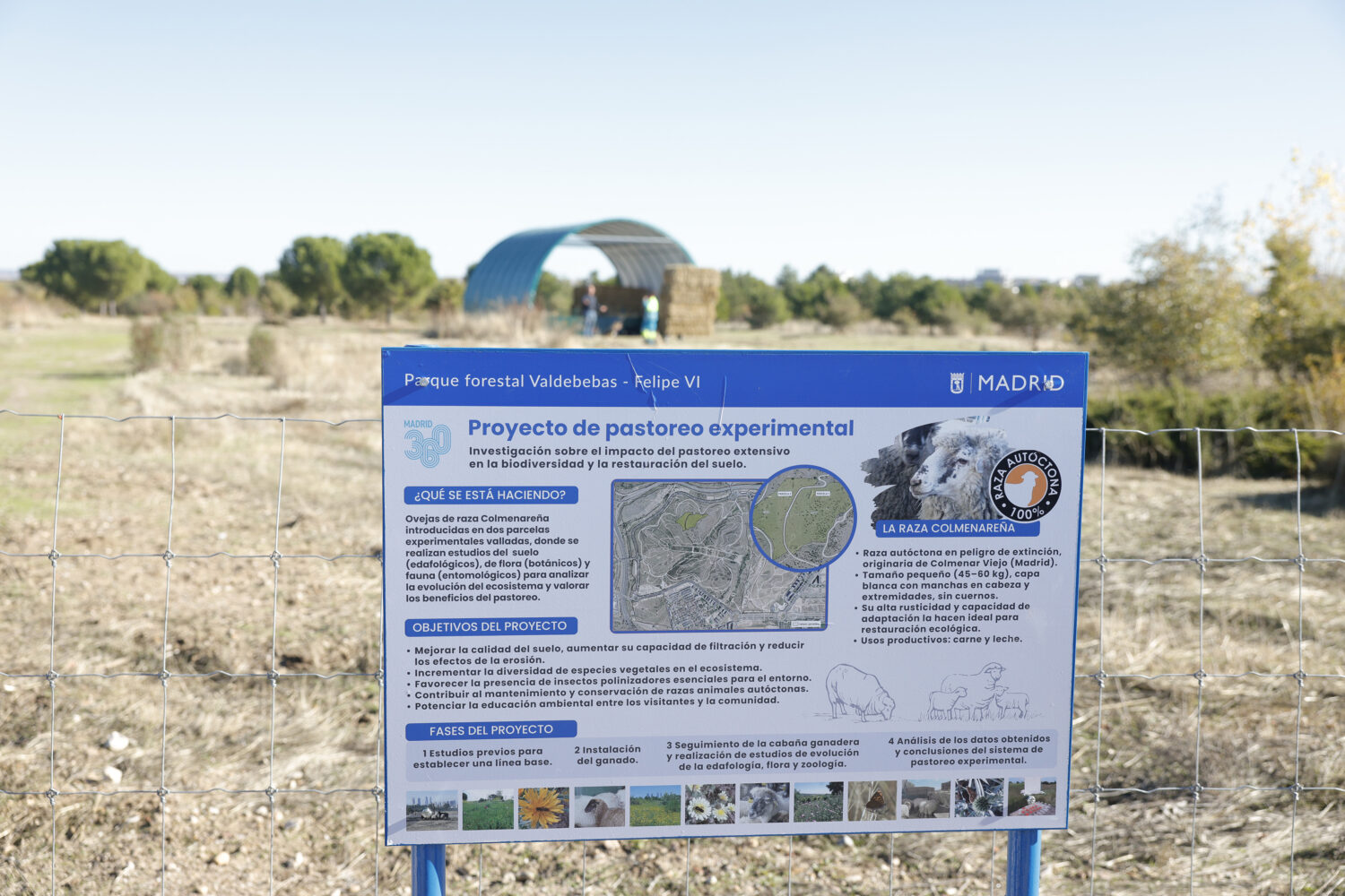 En el parque forestal de Valdebebas-Felipe VI, el Ayuntamiento ha puesto en marcha un proyecto experimental de aprovechamiento de pastoreo controlado con el fin de evaluar los efectos de un rebaño de ovejas sobre la evolución de los suelos y la composición de la flora en determinadas zonas del parque. Esta iniciativa constituye una herramienta de investigación aplicada destinada a mejorar la gestión forestal y el conocimiento científico del comportamiento del ecosistema.