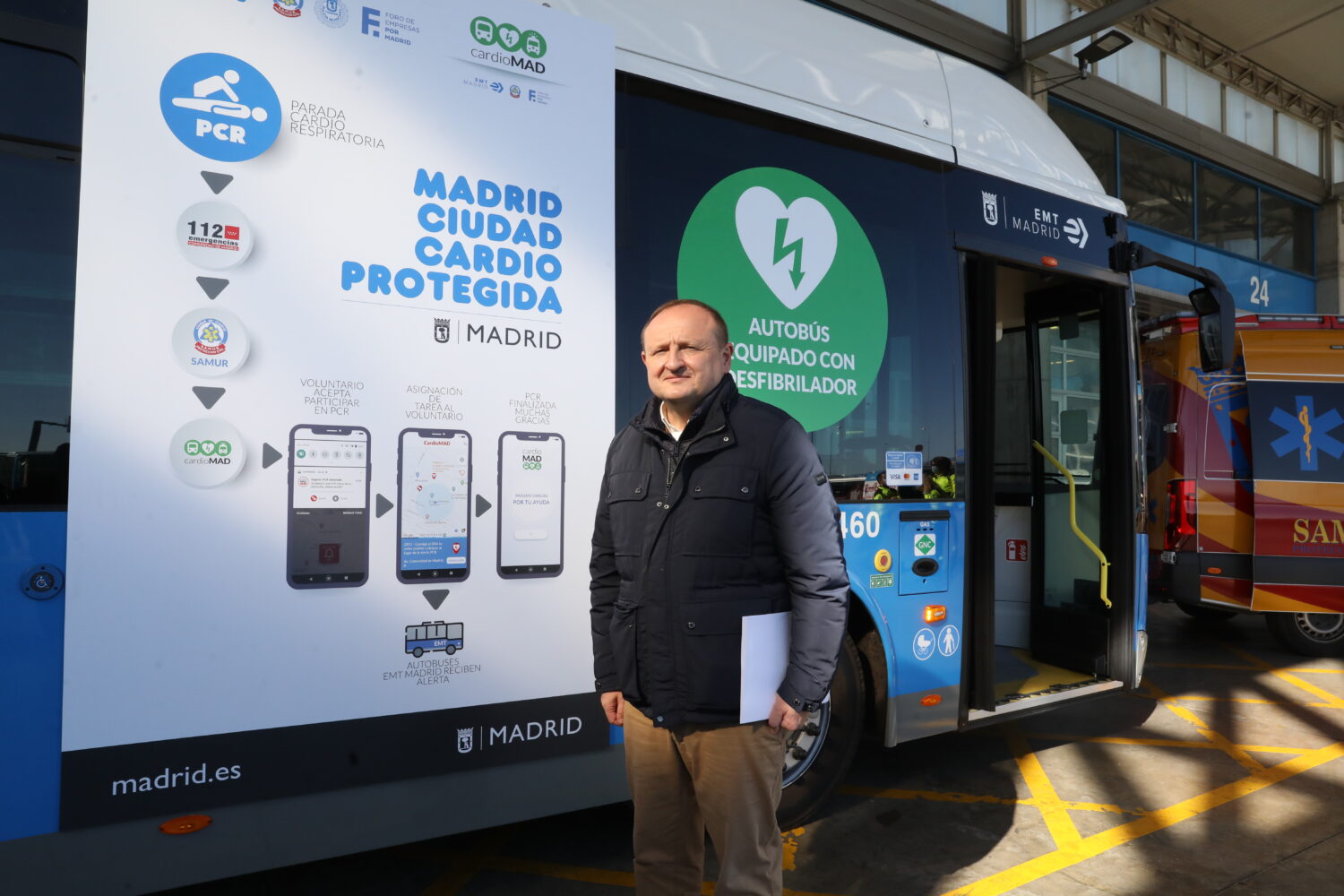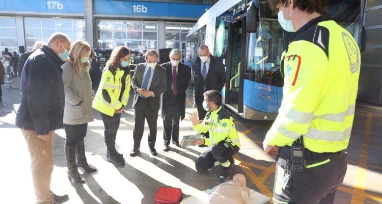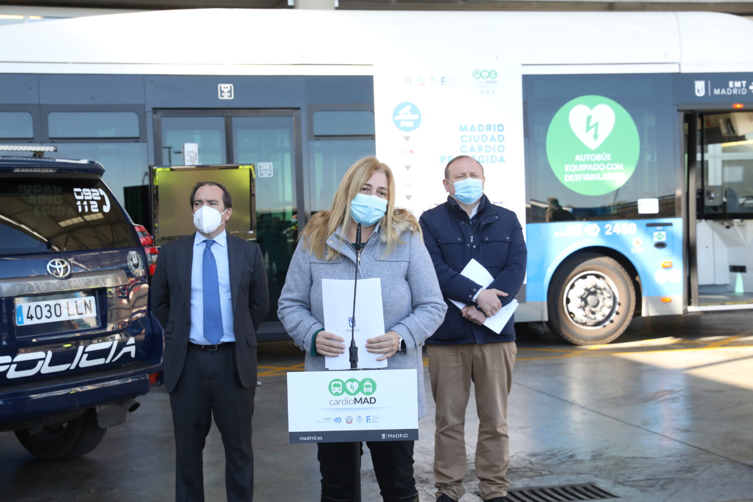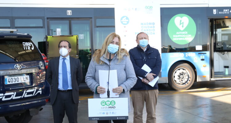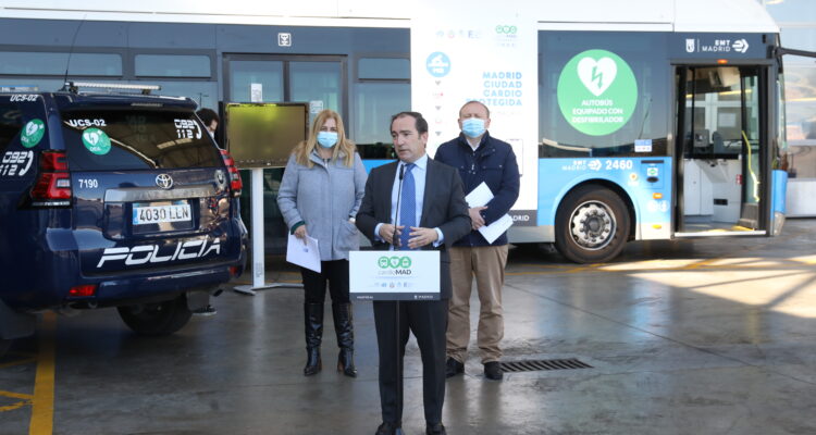 En esta ocasión, Sanz, Carabante y Redondo, desde el Centro de Operaciones de la Empresa Municipal de Transportes (EMT) de Sanchinarro donde han presentado el programa, han trasladado la importancia de esta iniciativa para dotar a la ciudad de una extensa red de desfibriladores externos automáticos portátiles, tanto en autobuses de la EMT como en vehículos de la Policía Municipal. También han destacado el desarrollo de una aplicación que geolocalice inmediatamente al voluntario disponible más cercano a un aviso de parada cardiaca, un ‘reanimador voluntario’, que actuará bajo la gestión y coordinación del SAMUR-Protección Civil. Se trata de unos dispositivos seguros y eficaces que permiten ser usados por personas con un mínimo de formación y entrenamiento.