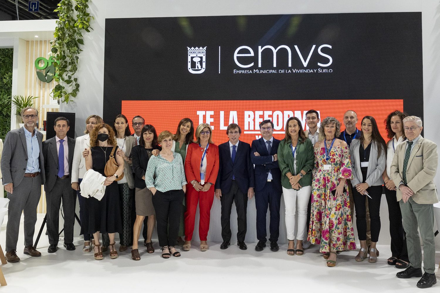 El alcalde de Madrid, José Luis Martínez-Almeida, ha visitado hoy, junto al concejal delegado de Vivienda, Álvaro González, el estand con el que el Ayuntamiento participa en el Salón Inmobiliario de Madrid, SIMA 2022, y en el que se ofrece información sobre los servicios y la actividad realizada por el Consistorio y la Empresa Municipal de Vivienda y Suelo (EMVS), además de todas las iniciativas relacionadas con el sector de la vivienda protegida en la capital.