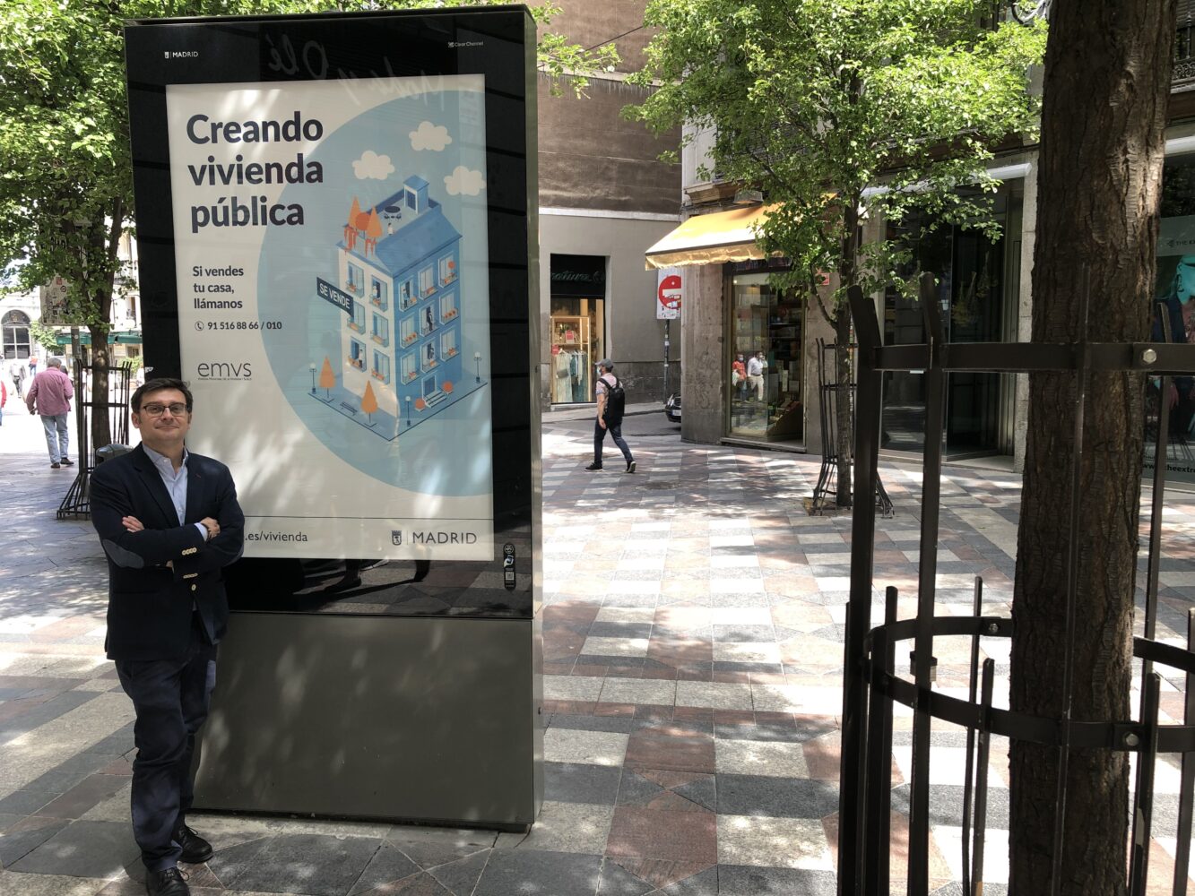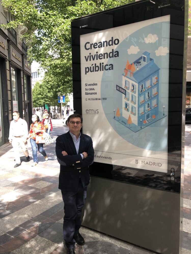 El concejal delegado del Área de Vivienda, Álvaro González, y el consejero delegado de la Empresa Municipal de la Vivienda y Suelo (EMVS), Diego Lozano, han presentado este martes ‘Creando vivienda pública: si vendes tu casa, llámanos’, una campaña publicitaria enfocada para que el Ayuntamiento de la capital pueda aumentar su parque de vivienda protegida. Para ello, la EMVS va a destinar 15 millones de euros a comprar inmuebles a particulares.