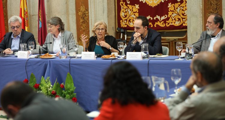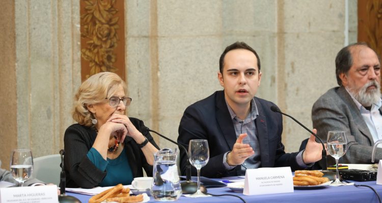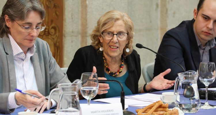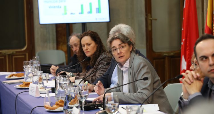 La alcaldesa de Madrid, Manuela Carmena, acompañada de la delegada de Equidad, Asuntos Sociales y Empleo y primera teniente de Alcalde, Marta Higueras, y del delegado de Desarrollo Urbano Sostenible, José Manuel Calvo, ha presentado las diez líneas de actuación pública que considera fundamentales para garantizar el derecho a la vivienda en la ciudad de Madrid. Dentro de estos puntos, la alcaldesa ha explicado diversas medidas que ya se han puesto en marcha desde el Ayuntamiento de Madrid a lo largo de su primer mandato junto a otras medidas que, siendo necesarias, trascienden las competencias municipales.