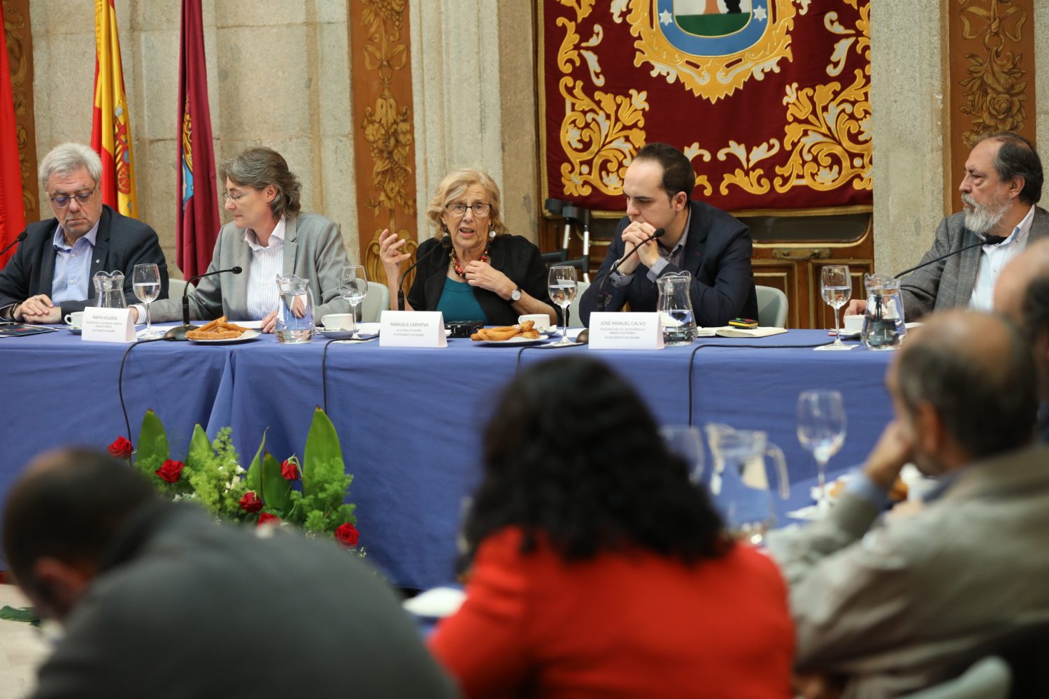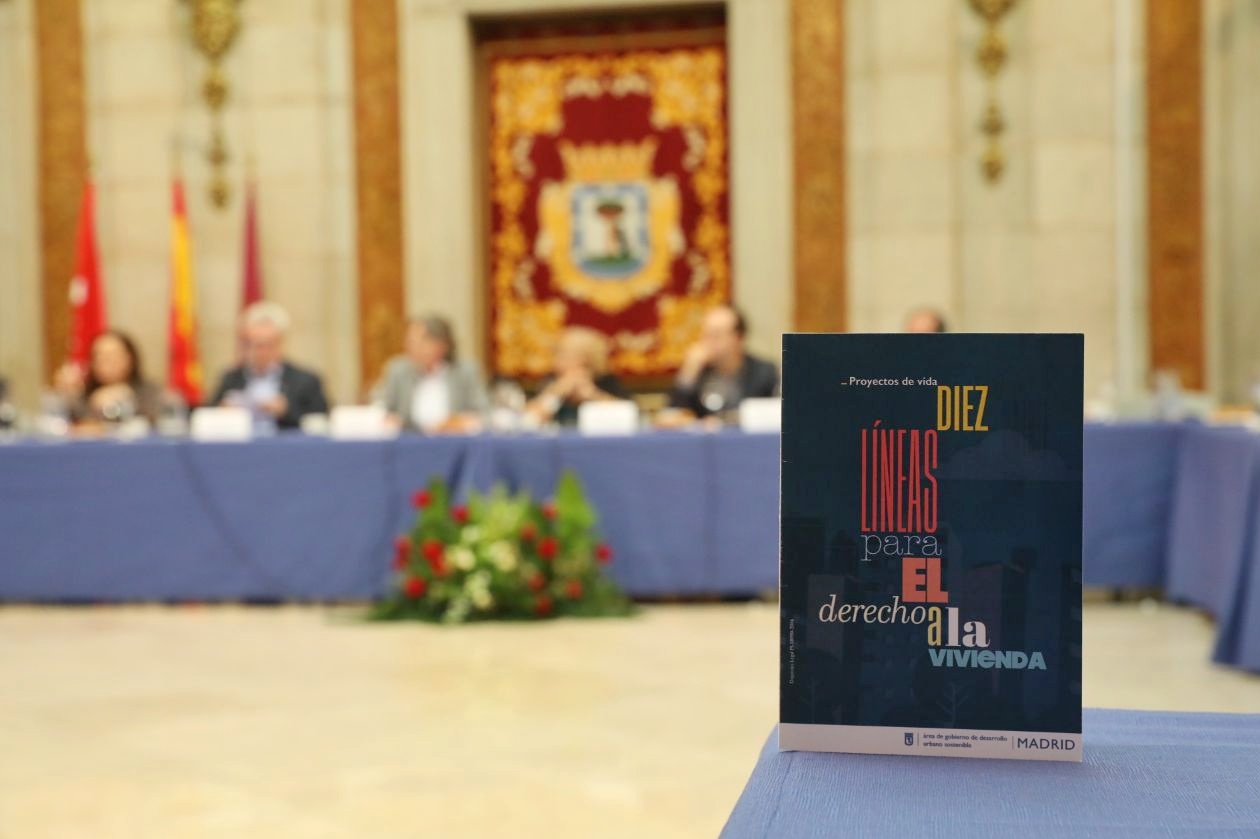 La alcaldesa de Madrid, Manuela Carmena, acompañada de la delegada de Equidad, Asuntos Sociales y Empleo y primera teniente de Alcalde, Marta Higueras, y del delegado de Desarrollo Urbano Sostenible, José Manuel Calvo, ha presentado las diez líneas de actuación pública que considera fundamentales para garantizar el derecho a la vivienda en la ciudad de Madrid. Dentro de estos puntos, la alcaldesa ha explicado diversas medidas que ya se han puesto en marcha desde el Ayuntamiento de Madrid a lo largo de su primer mandato junto a otras medidas que, siendo necesarias, trascienden las competencias municipales.
