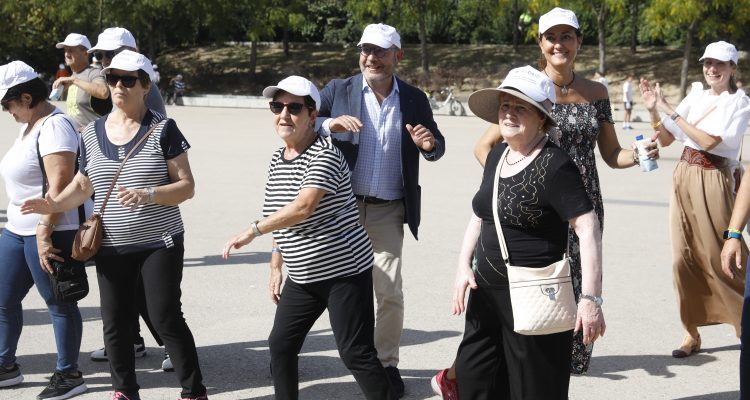 El Programa de Ejercicio al Aire Libre ‘Moverse es Cuidarse’ dirigido a personas mayores sigue consolidándose gracias a la alta participación de usuarios que se benefician de esta iniciativa municipal que ofrece numerosos recursos para mantenerse activo. En la conmemoración del Día Internacional de las Personas de Edad, que se celebró el 1 de octubre, el delegado de Políticas Sociales, Familia e Igualdad, José Fernández, y la concejala del distrito de Arganzuela, Lola Navarro, se han unido hoy a usuarios del programa en una caminata por el entorno de Matadero y han realizado juntos ejercicios aeróbicos en la explanada multiusos de Madrid Río.